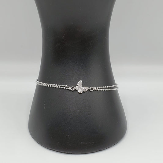 Delicate .925 Silver Chain Zircon Butterfly 7" Bracelet