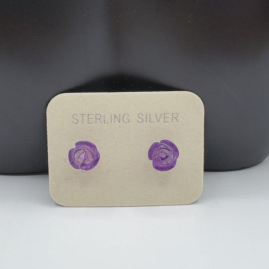 Delicate Hand Carved Amethyst Rose Bud Stud Earrings.