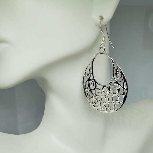 Drop Dangle Swirl .925 Sterling Silver Earrings