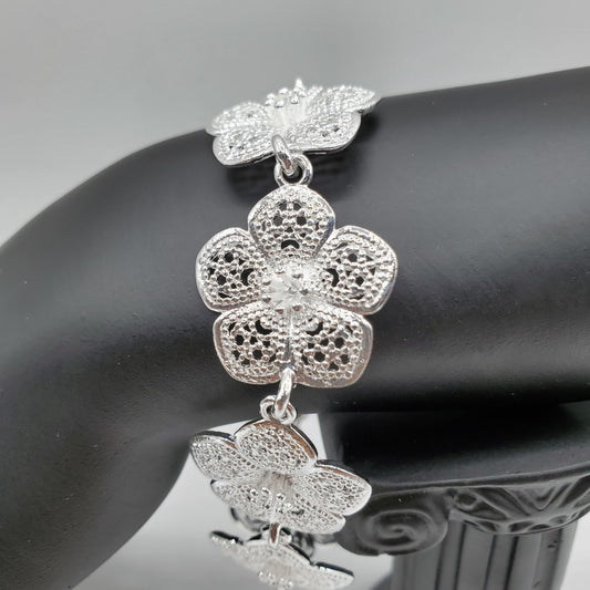 .925 Sterling Silver Hawaiian Flower Bracelet