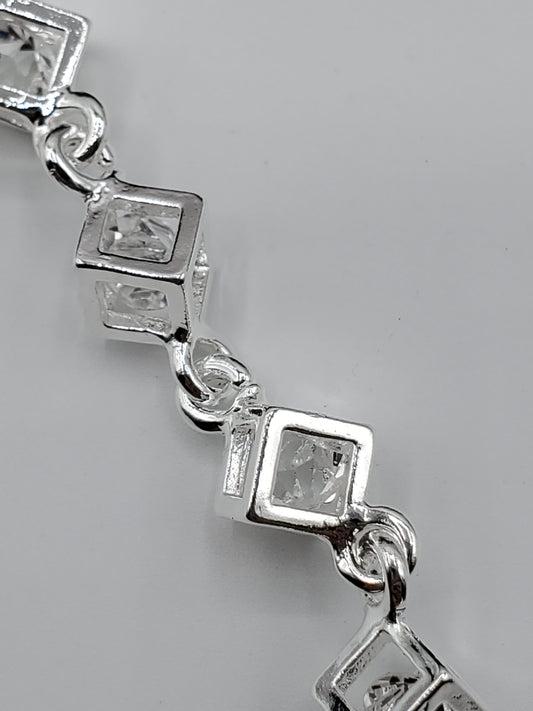 .925 Sterling Silver Clear Crystal Cube Bracelet