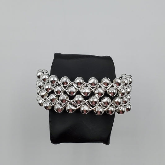 .925 Sterling Silver Grape Beads Open Cuff Bangle.
