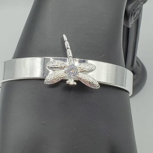 .925 Sterling Silver Dragonfly Open Cuff Bracelet