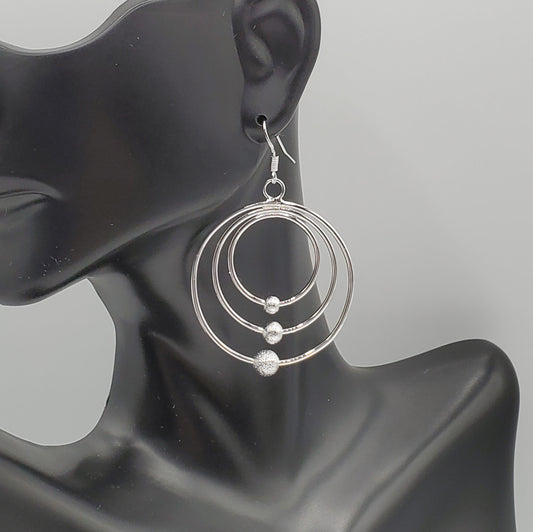 .925 Sterling Silver Graduated Circle Scrub Bead Dangle Earrings.