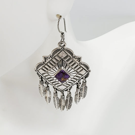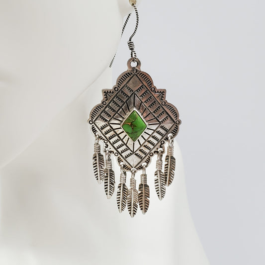 Vintage Style Turquoise Eagle Feather Dangle Hoop Earrings