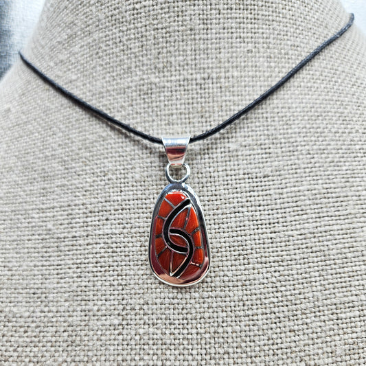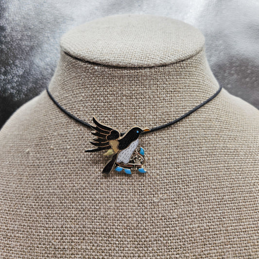 Zuni Turquoise Inlay Magpie Silver Pendant/Brooch.