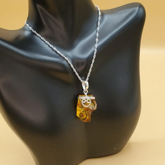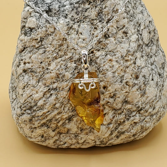Yellow Amber Pendant Accented with Sterling Silver Filigree Heart Design