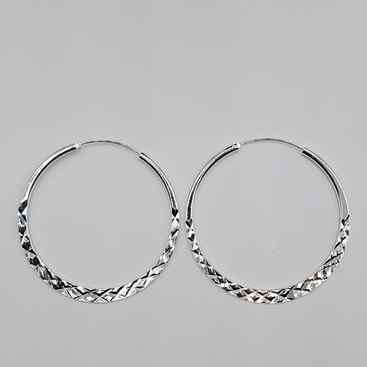 60's style .925 Sterling Silver diamond etched 54mm hoop earrings.