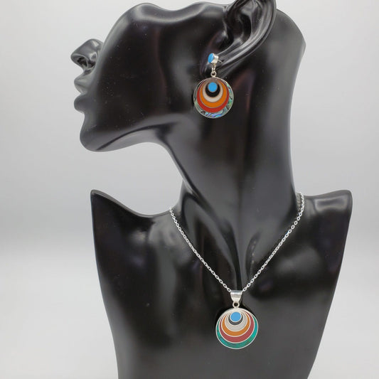 70's style Circular Enamel Inlay Earrings
