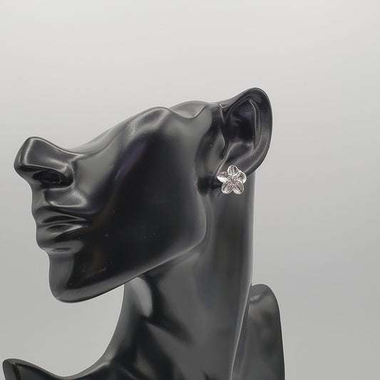 Dainty .925 Sterling Silver Hawaiian Plumeria Flower Stud Earring