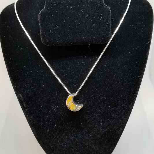 Minimalist Natural Citrine Moon Shape Pendant with 20" Silver Chain
