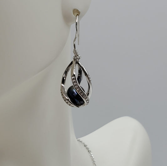 Boho Style 18" Pearl Necklace set in a twisted cage of .925 Sterling Silver