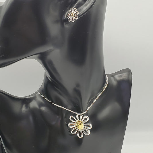 .925 Sterling Silver Summer Fun Daisy Flower Necklace set