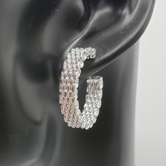 .925 Sterling Silver Circle Braided Mesh Ring, Earring, and Bracelet Set.