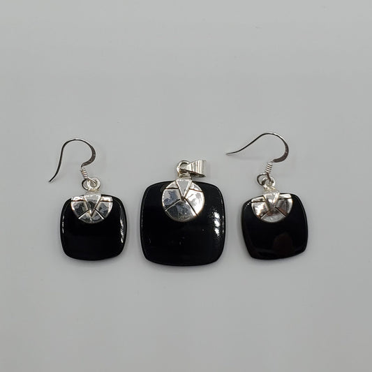Sterling Silver Black Onyx Pendant and Earrings Gift Set.