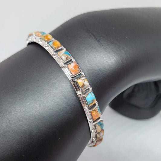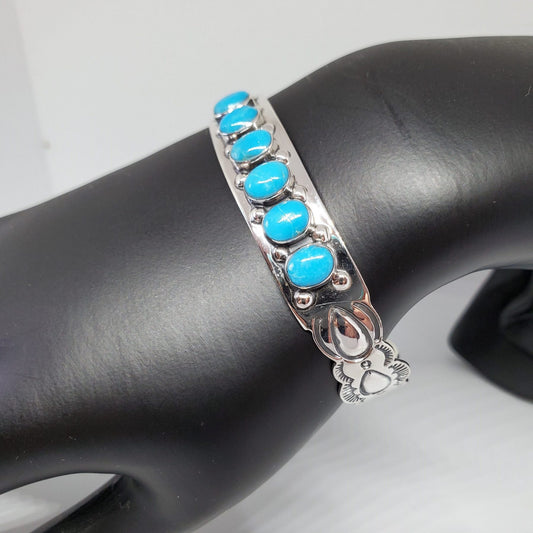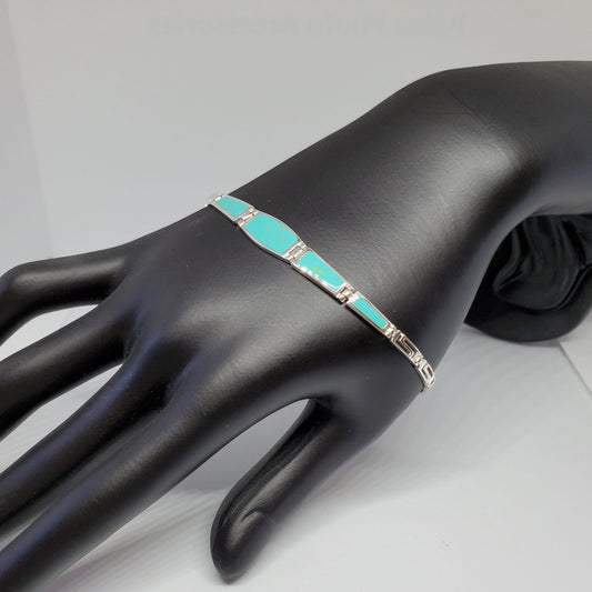 Delicate Turquoise Filigree 7" .925 Sterling Silver Bracelet
