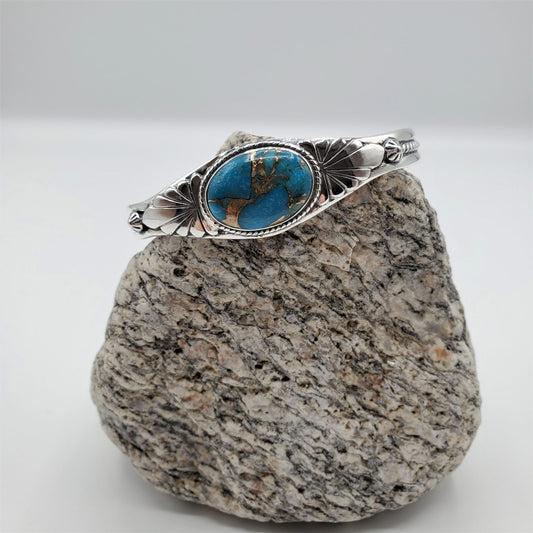 Matrix Turquoise Cuff Bracelet set in .925 Sterling Silver