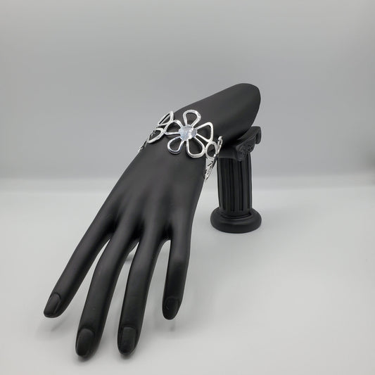 Retro .925 Sterling Silver Hawaiian Flower Open Cuff Bracelet
