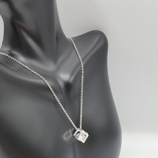 Classic hollow square .925 Sterling Silver Necklace with an 8mm crystal floating solitaire