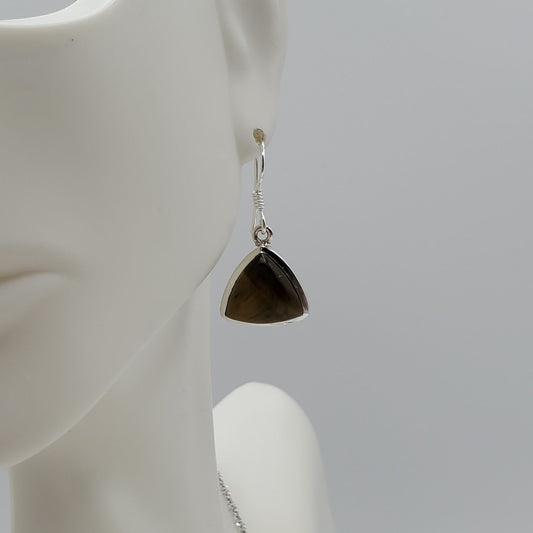 Tiger Eye Trillion shaped pendant with matching earrings gift set