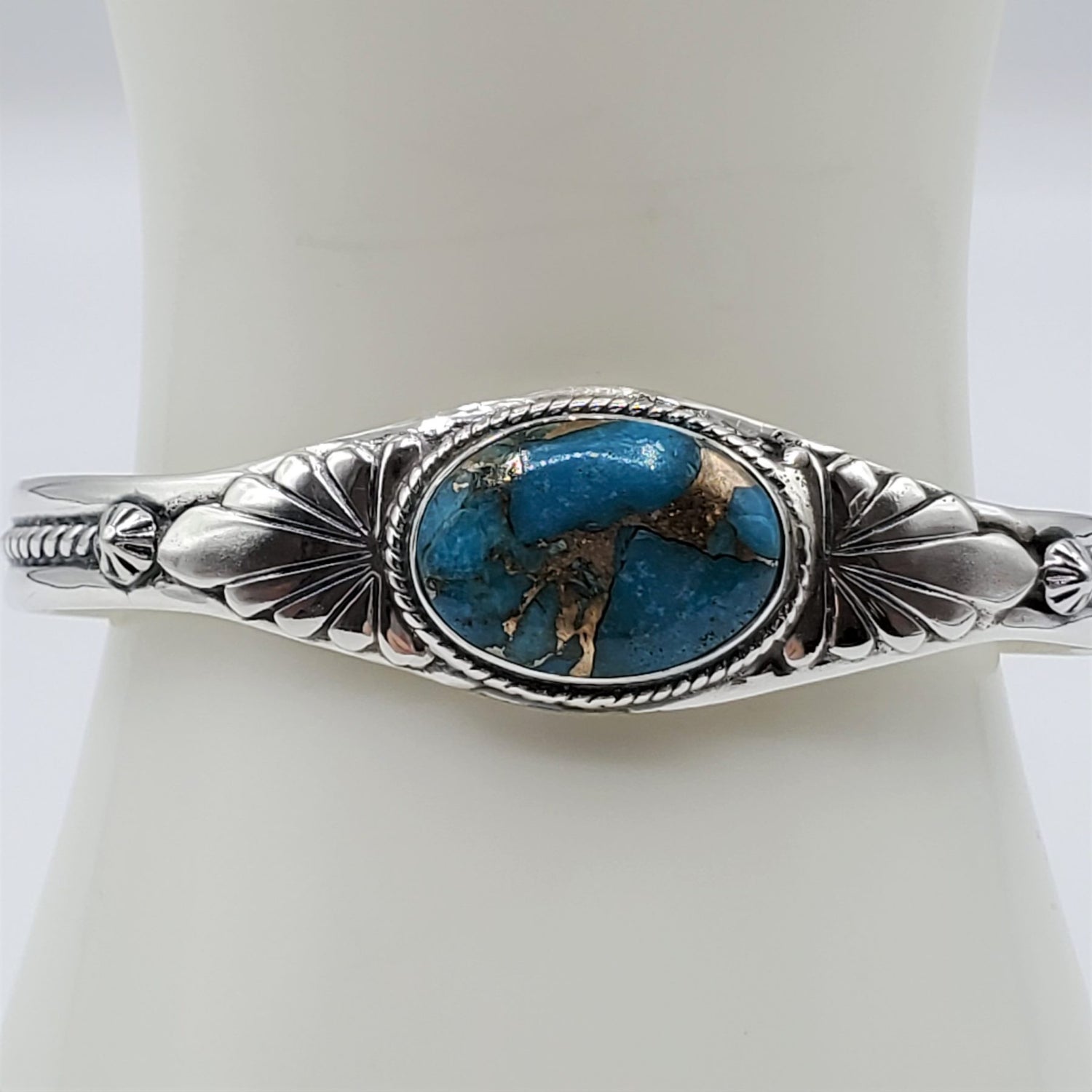 Most cuff bracelets are worn the wrong way, people wear them as you would a bangle bracelet. This is not correct. Cuff bracelets are made to be worn before the Ulnar bone just above the movement part of your hand. They were created to peak out of the sleeve of your shirt (cuff of the shirt) that you are wearing. They are sized as a regular bracelet 7 or 8” in diameter but because the design is based in the center of most of the bracelets it is not recommended to squeeze the bracelet to fit your wrist because it will damage the center design of the cuff. We carry a large variety of Cuff Bracelets, from large statement cuffs to smaller southwestern design cuffs.