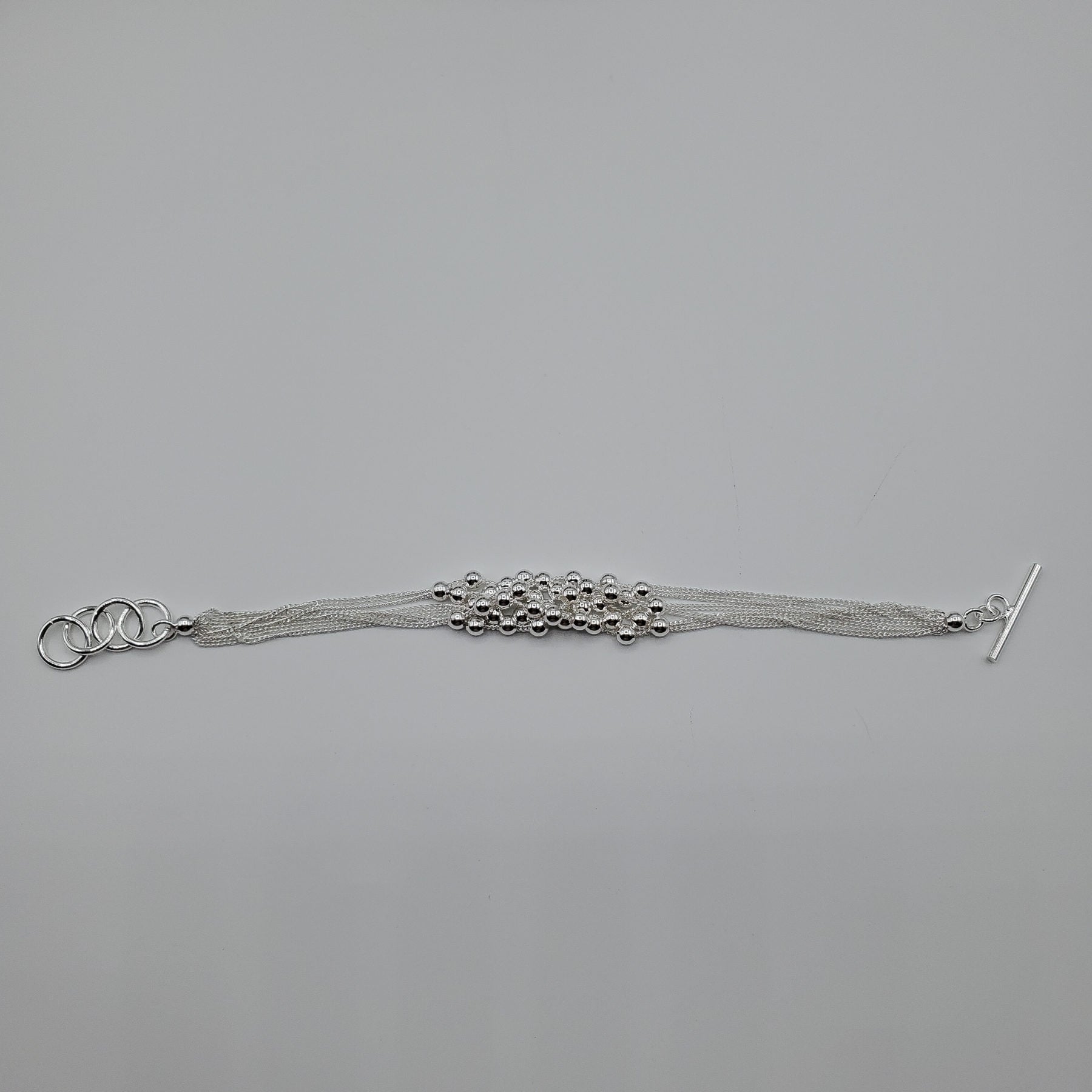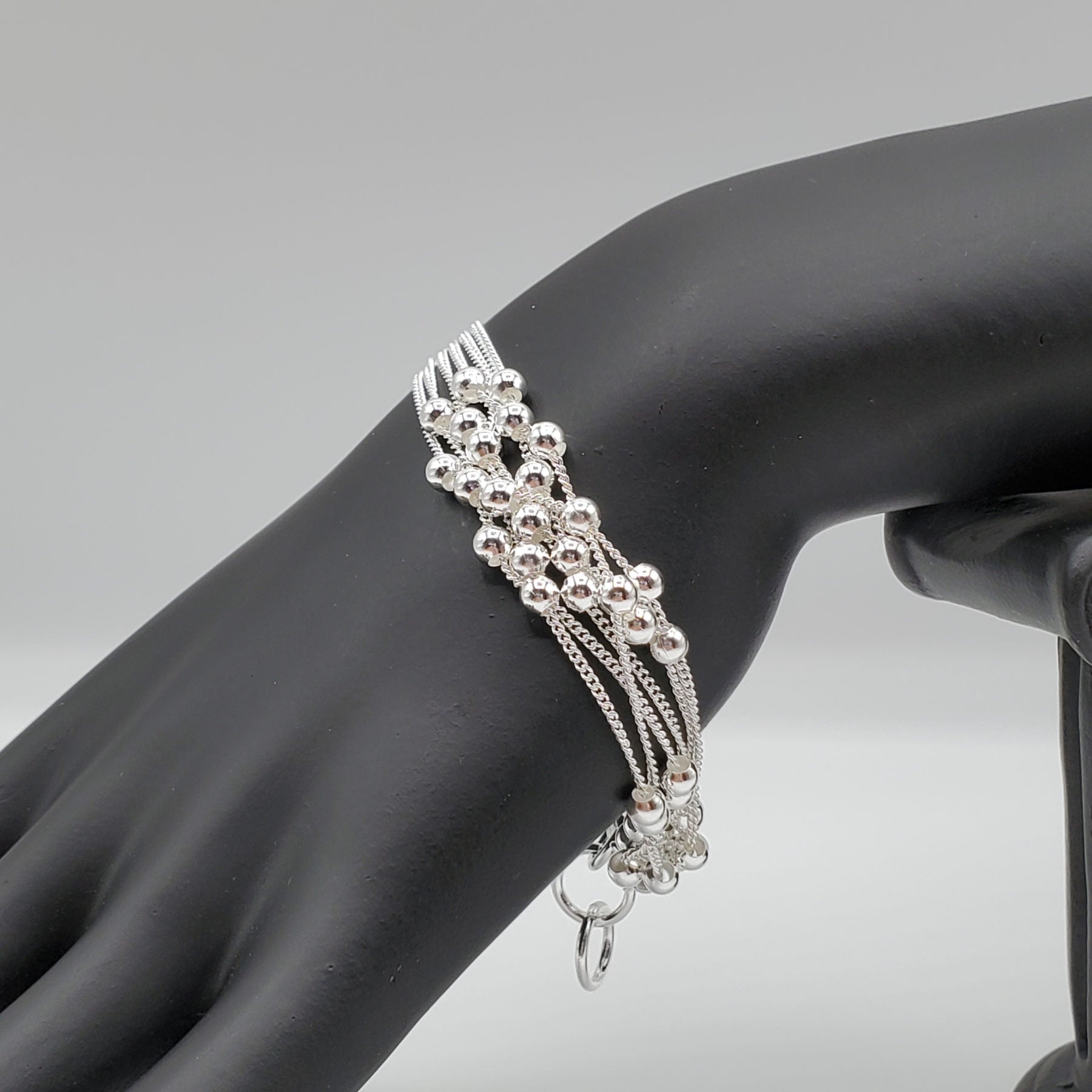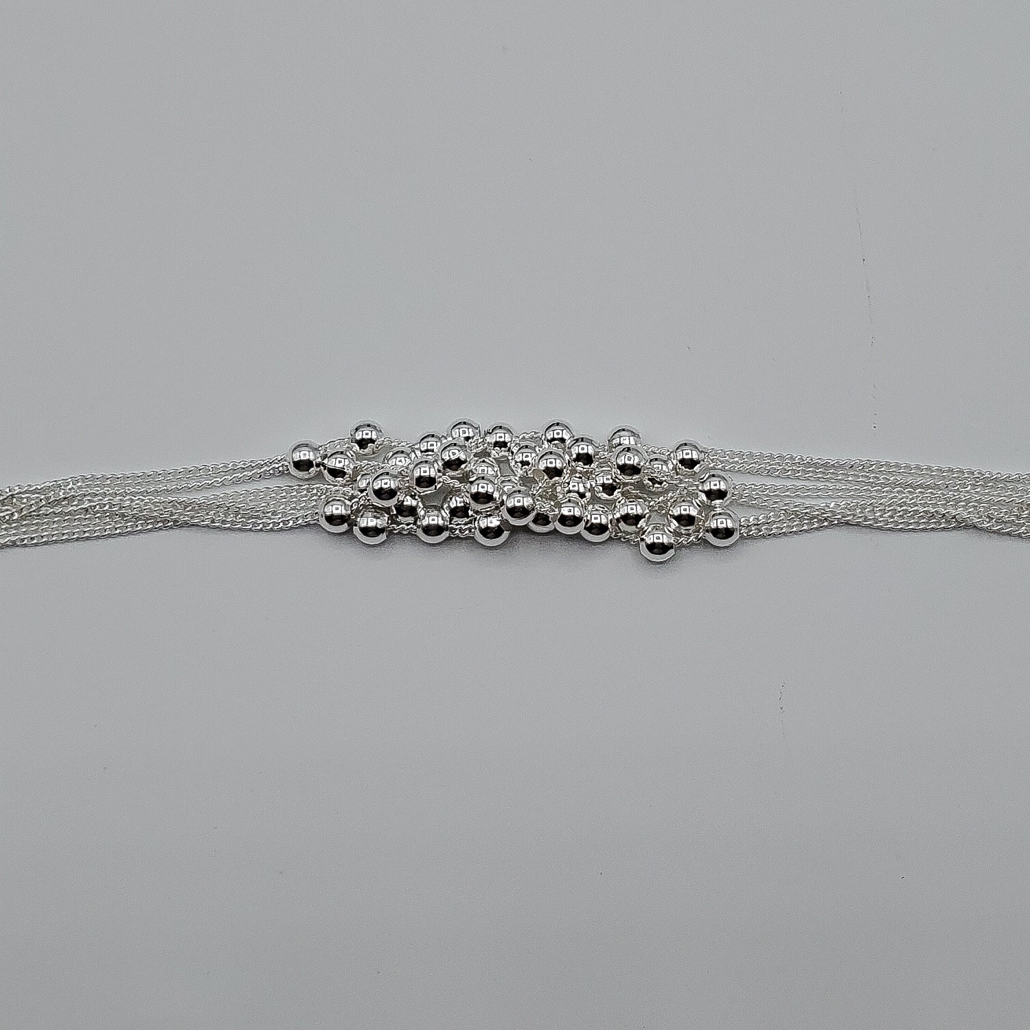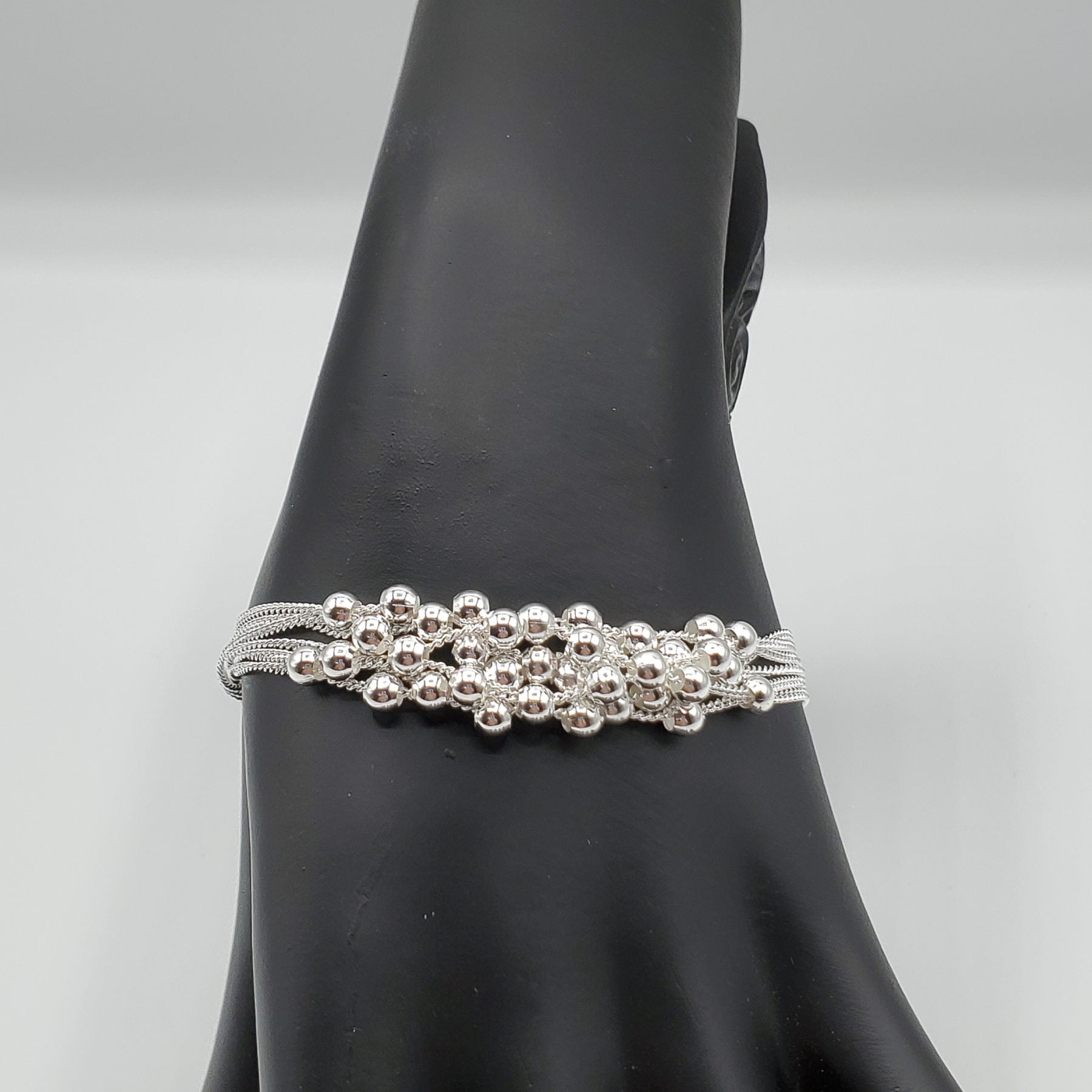 .925 Silver Grape Cluster Shaped Bead Bracelet adjustable lobster claw catch adjustable 7-8 " in length. Bead size is 2mm