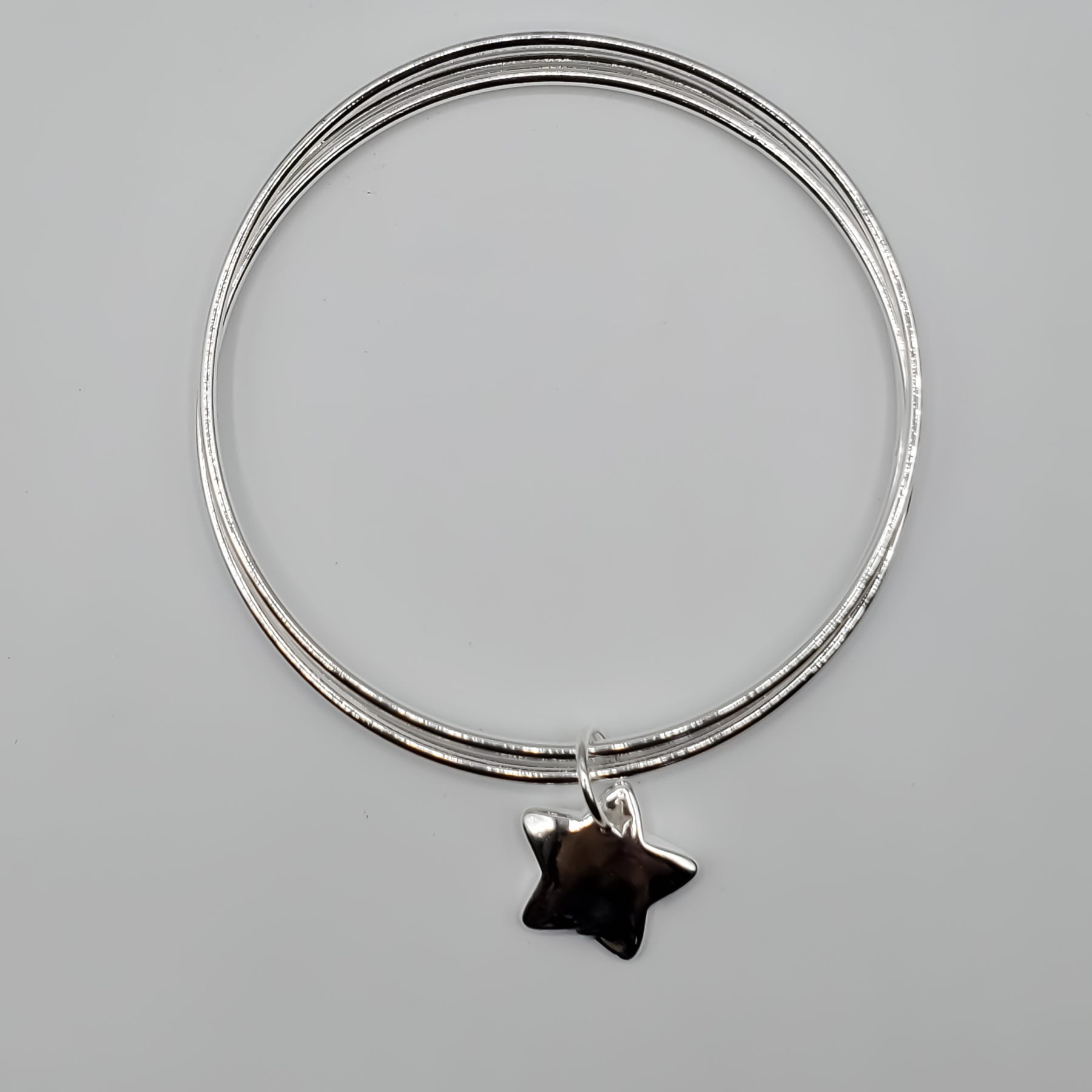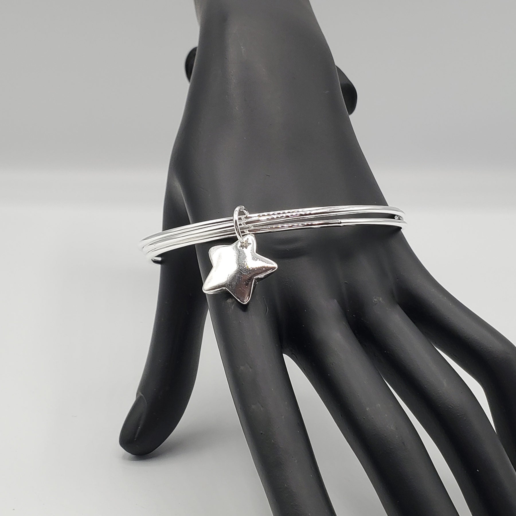 .925 Sterling Silver 3 bangle bracelet accented with a Sterling Silver Star Charm.