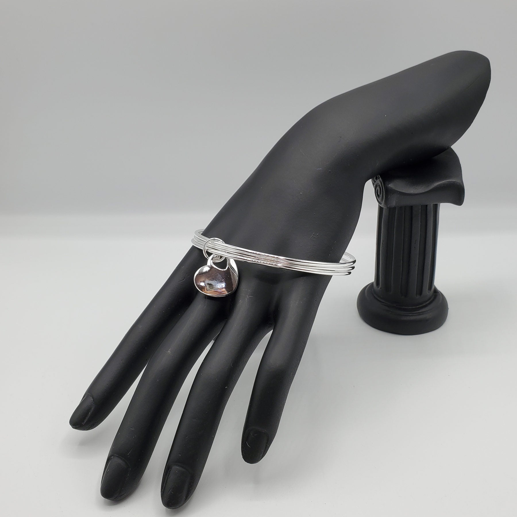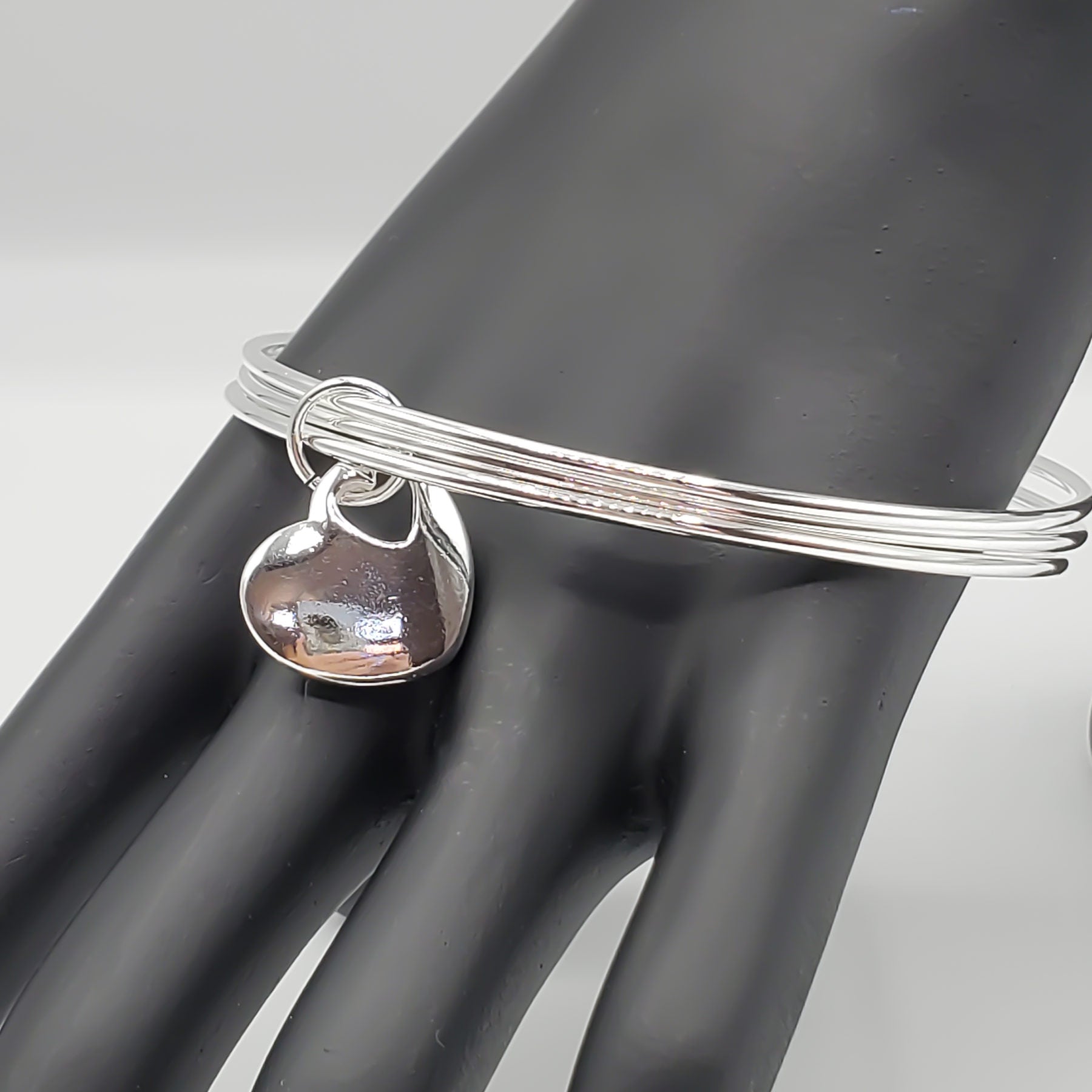 .925 Sterling Silver 3 tier bangle bracelet accented by a sterling silver heart charm. Bracelets are 7"