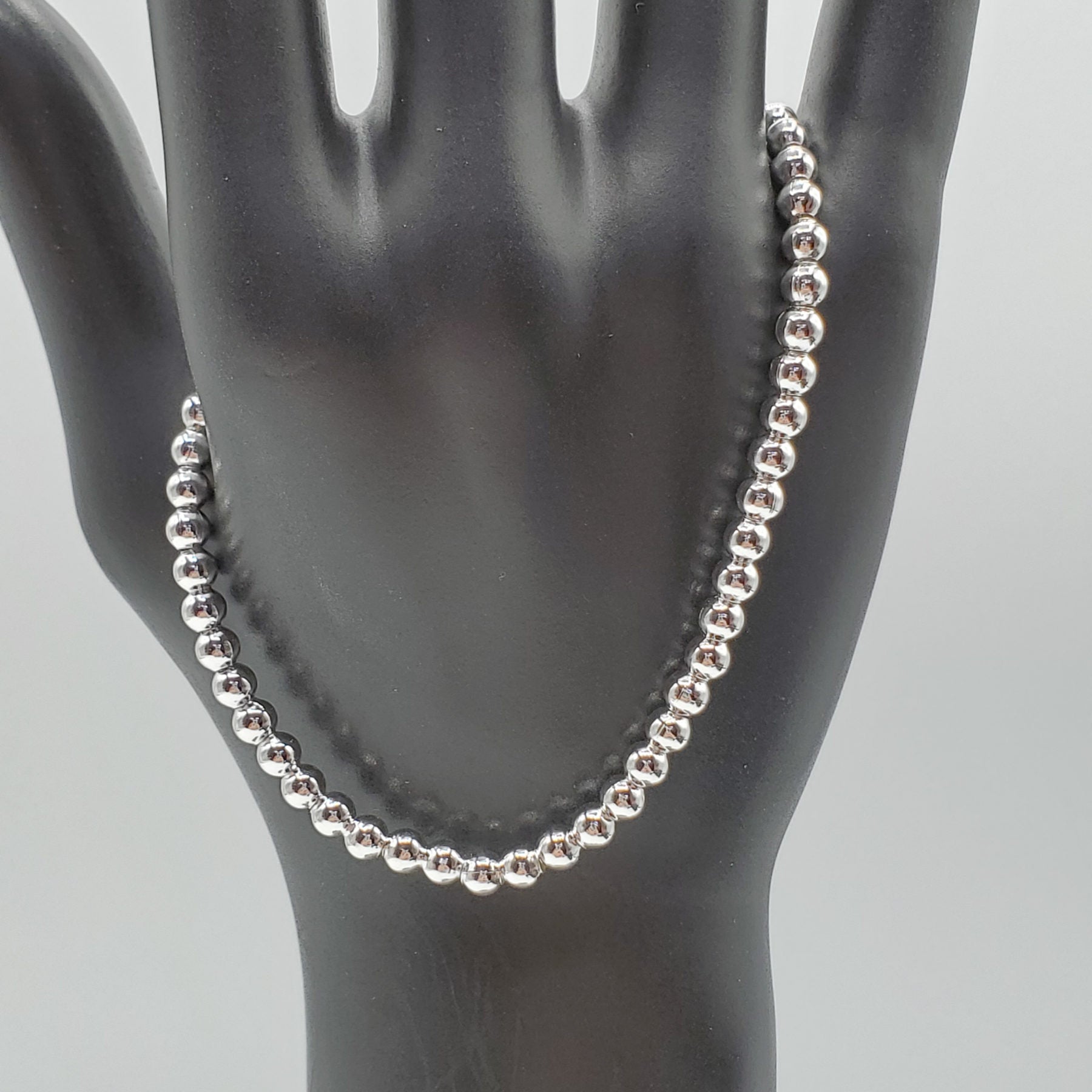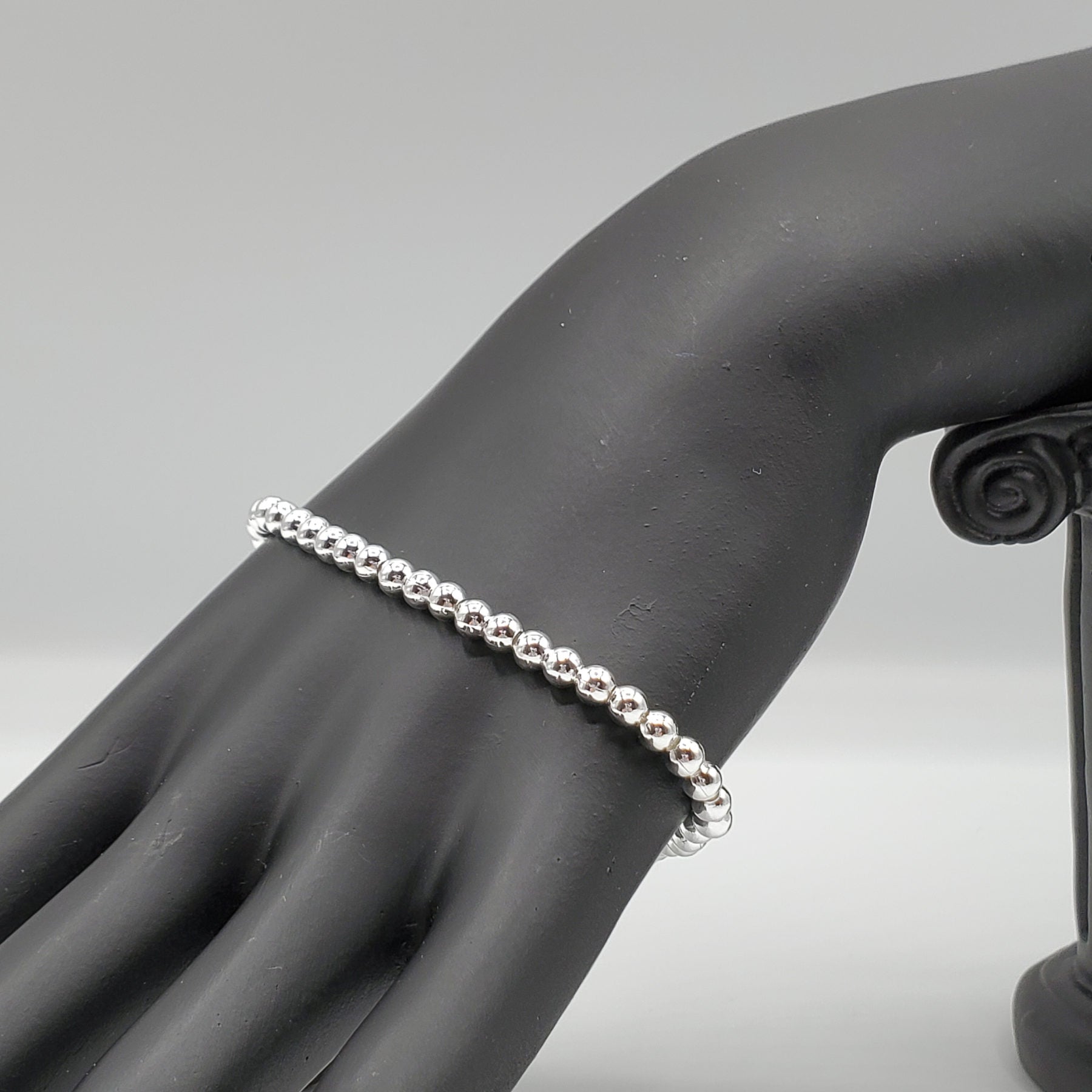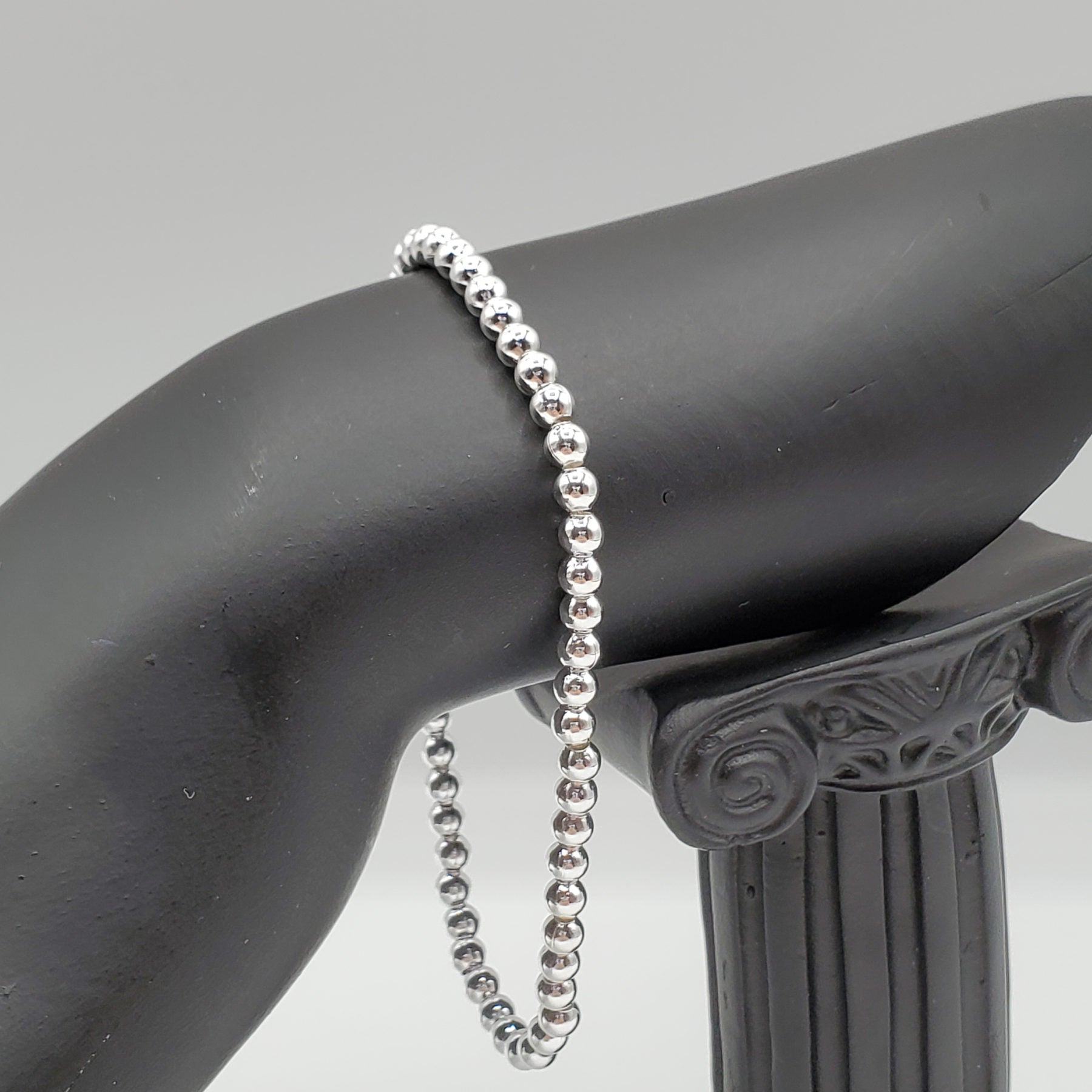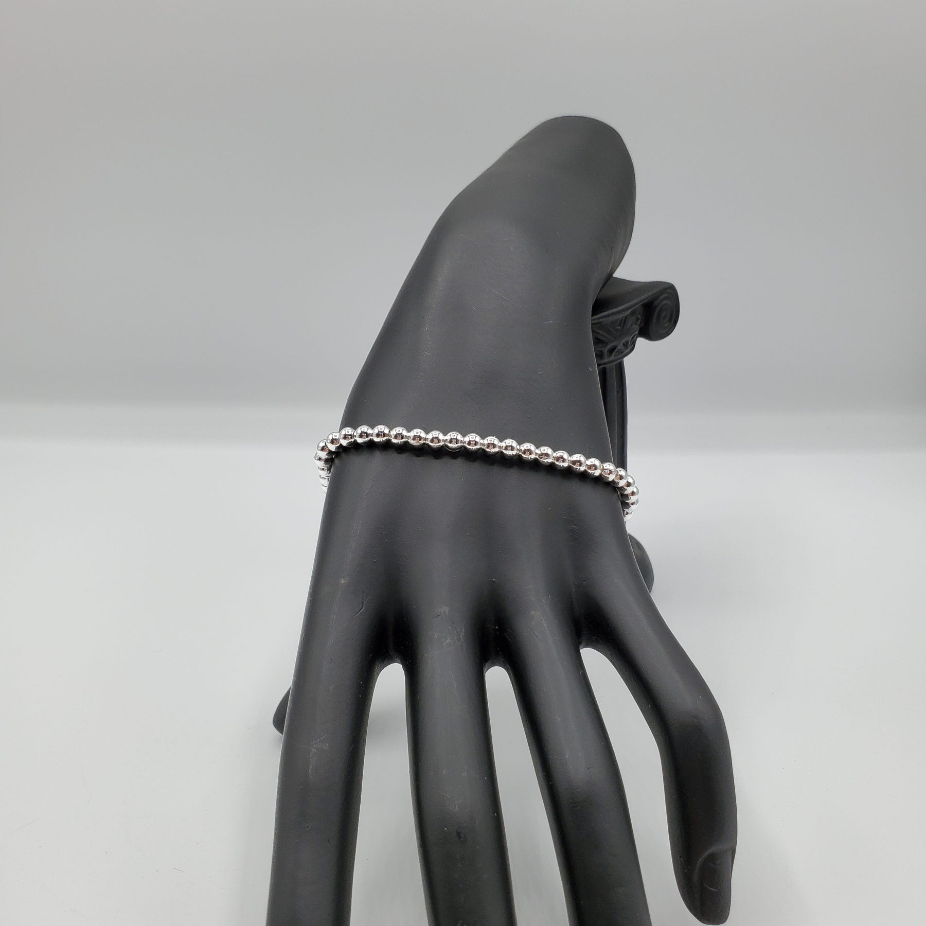 .925 Sterling Silver 4mm chain bead bracelet. The bracelet is adjustable to 8" with a lobster claw clasp.