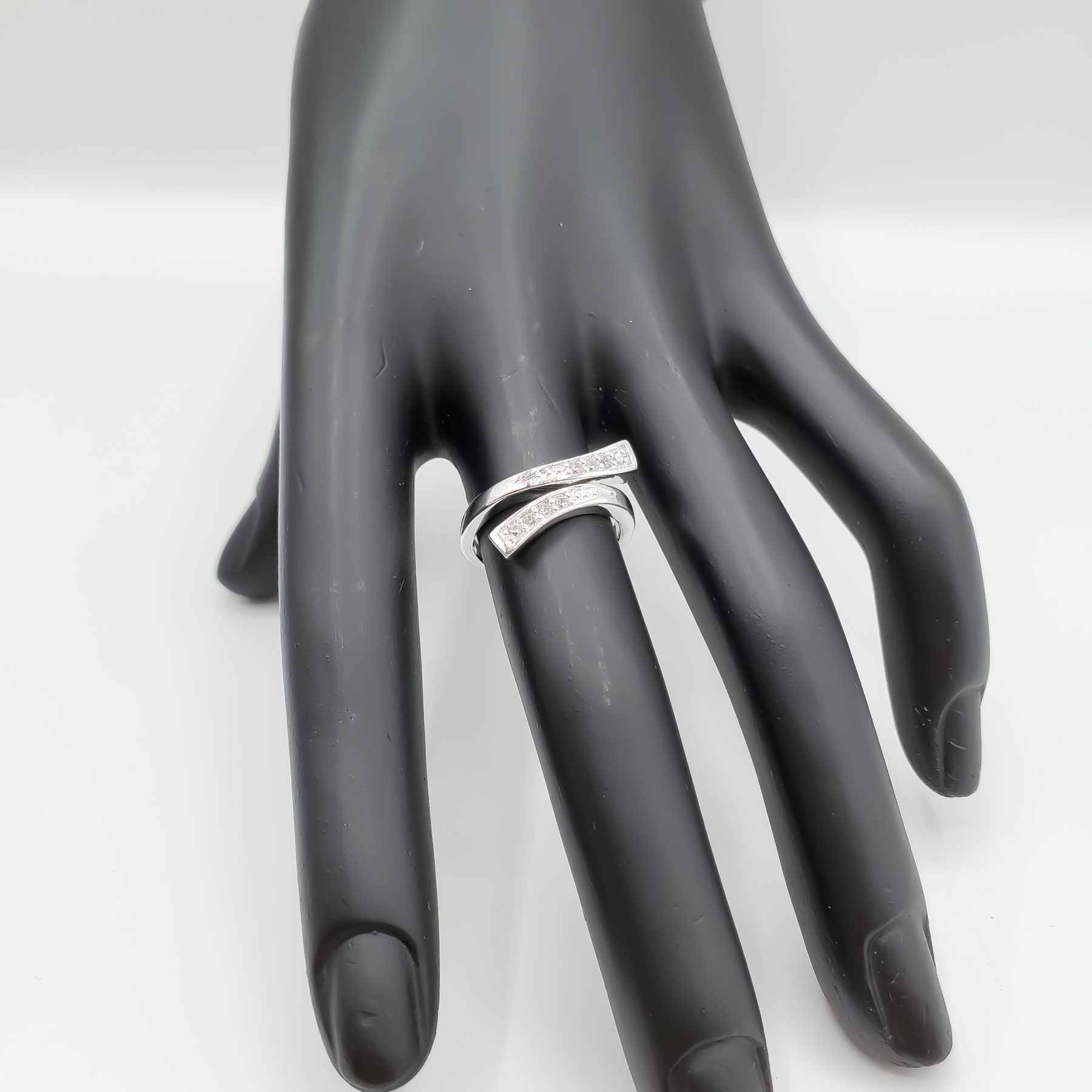 .925 sterling silver adjustable friendship band accented by clear crystals. This adjusts from size 5 to size 9 for best fit.