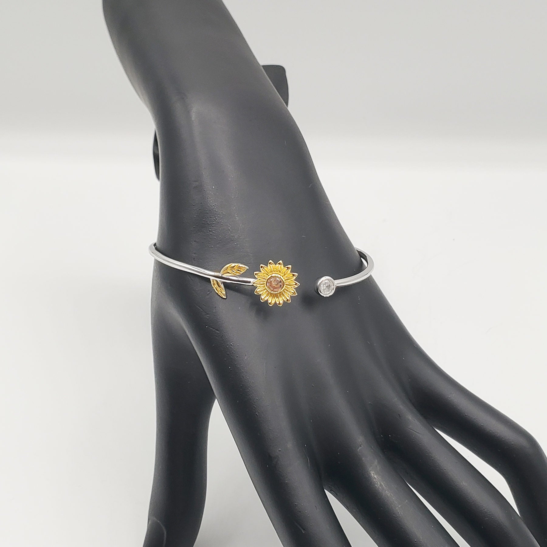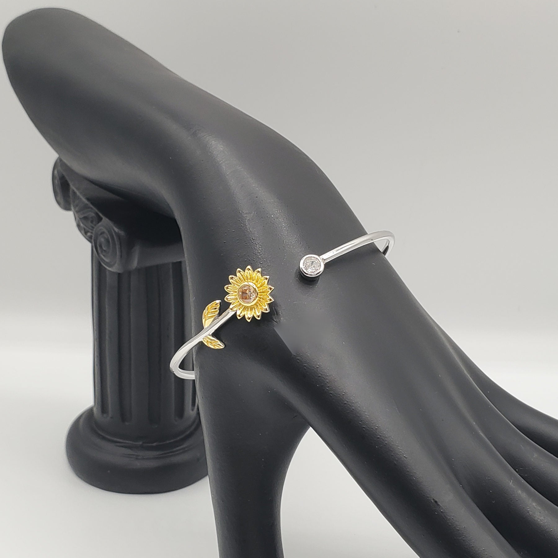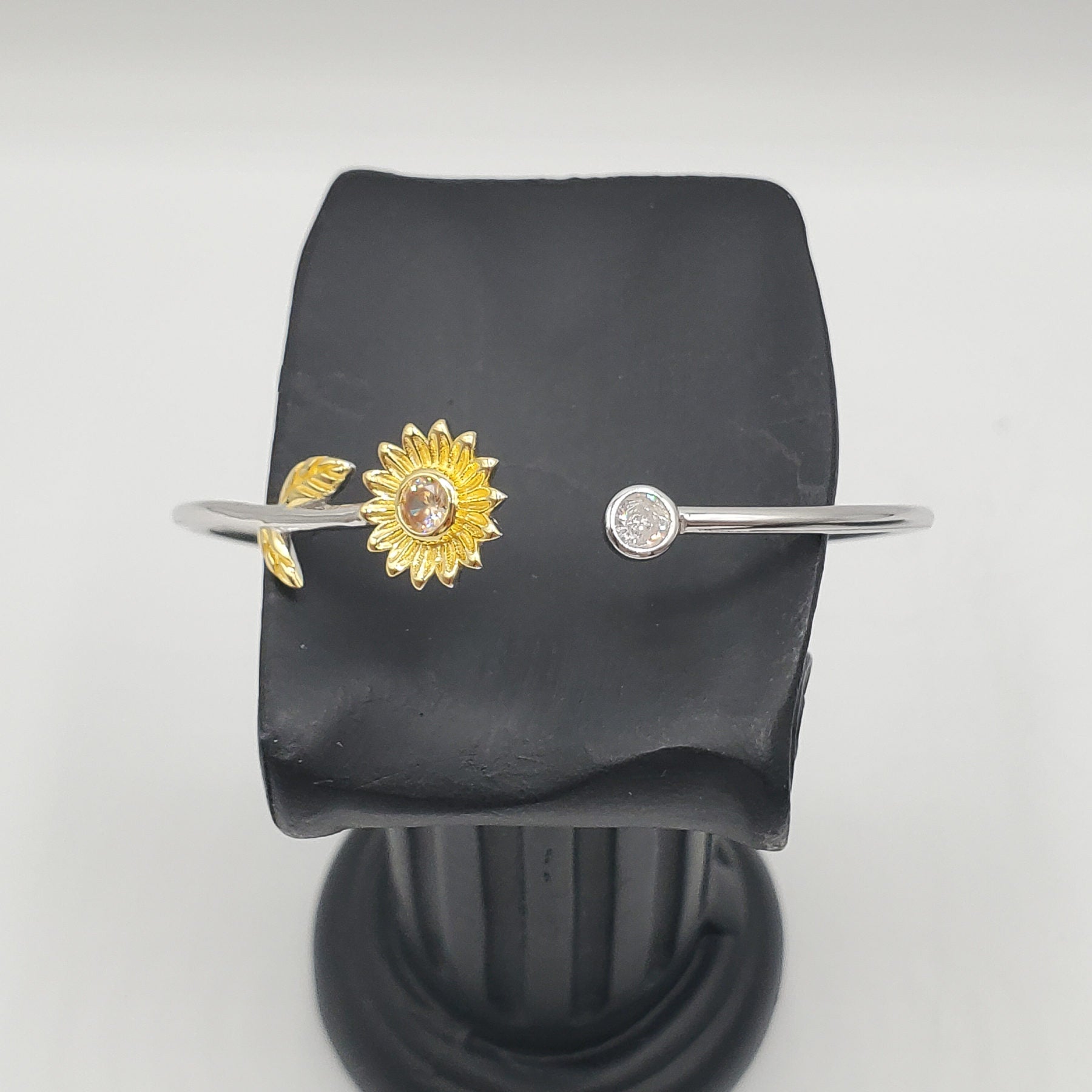 .925 Sterling Silver adjustable Sunflower cuff bangle bracelet
