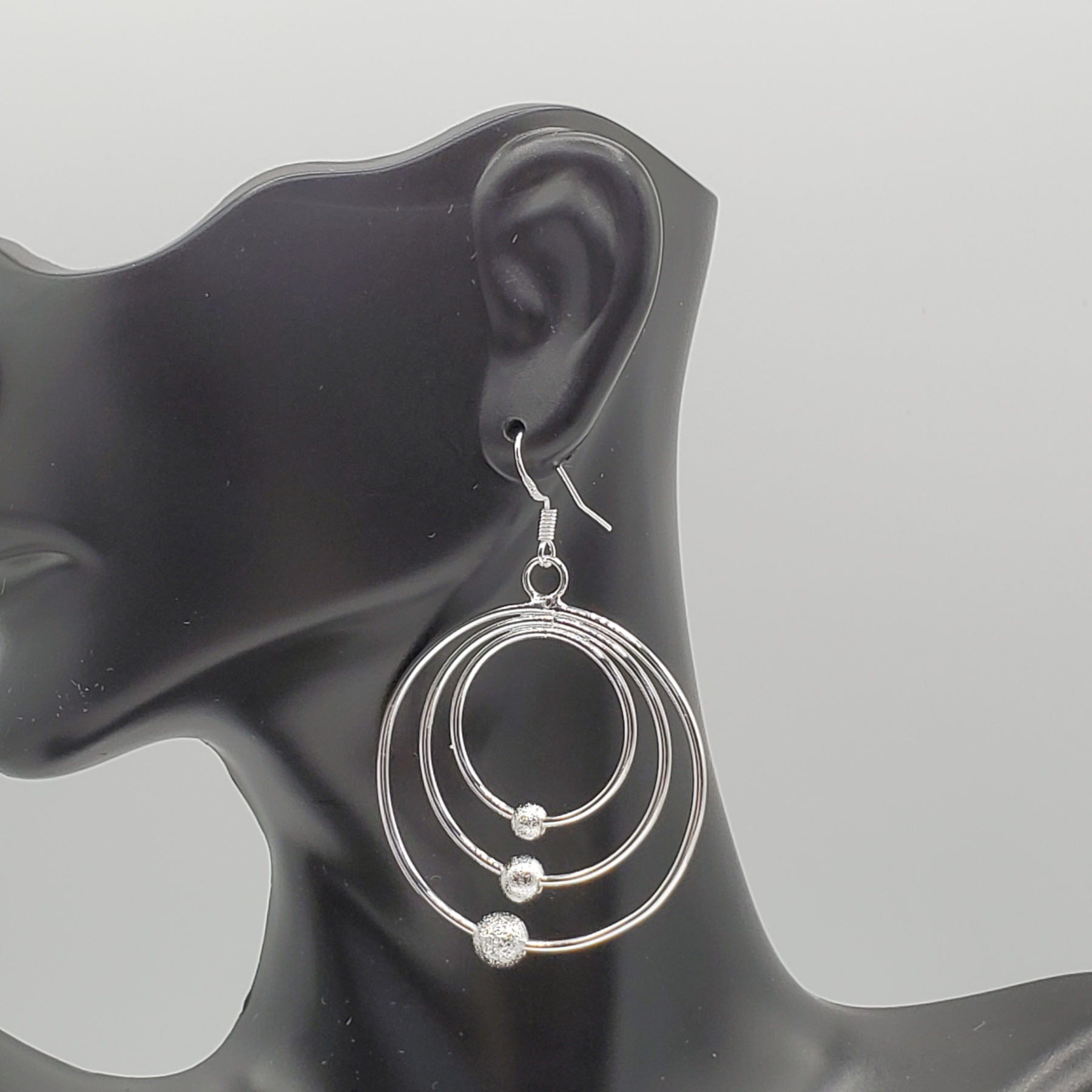 .925 Sterling Silver Graduated Circle Scrub Bead Dangle Earrings.