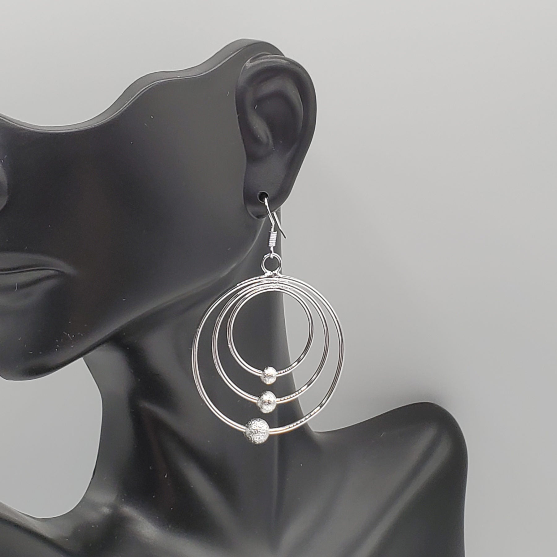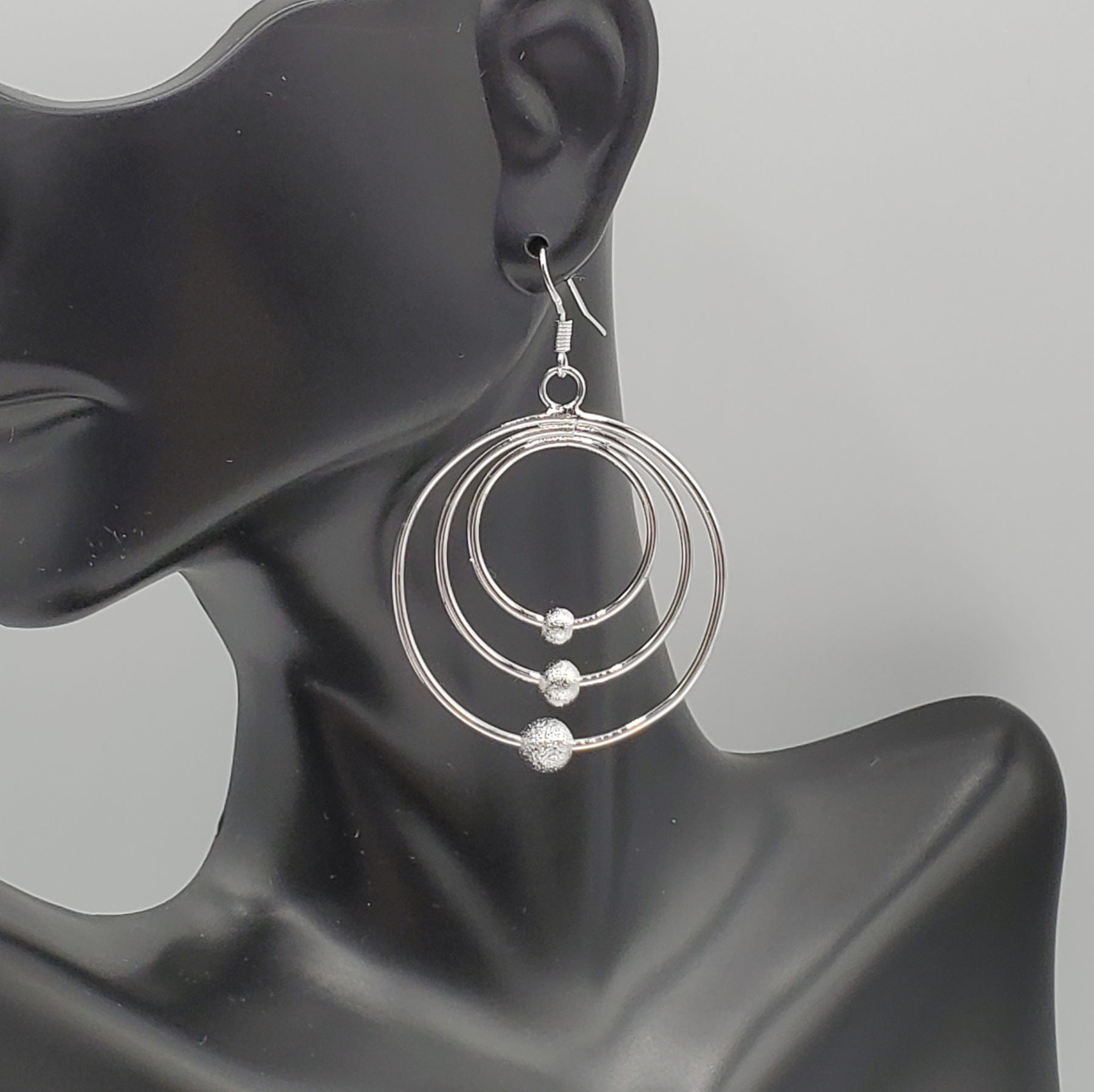 .925 Sterling Silver Graduated Circle Scrub Bead Dangle Earrings. Largest Circle is 36mm in width and 37 mm in length
