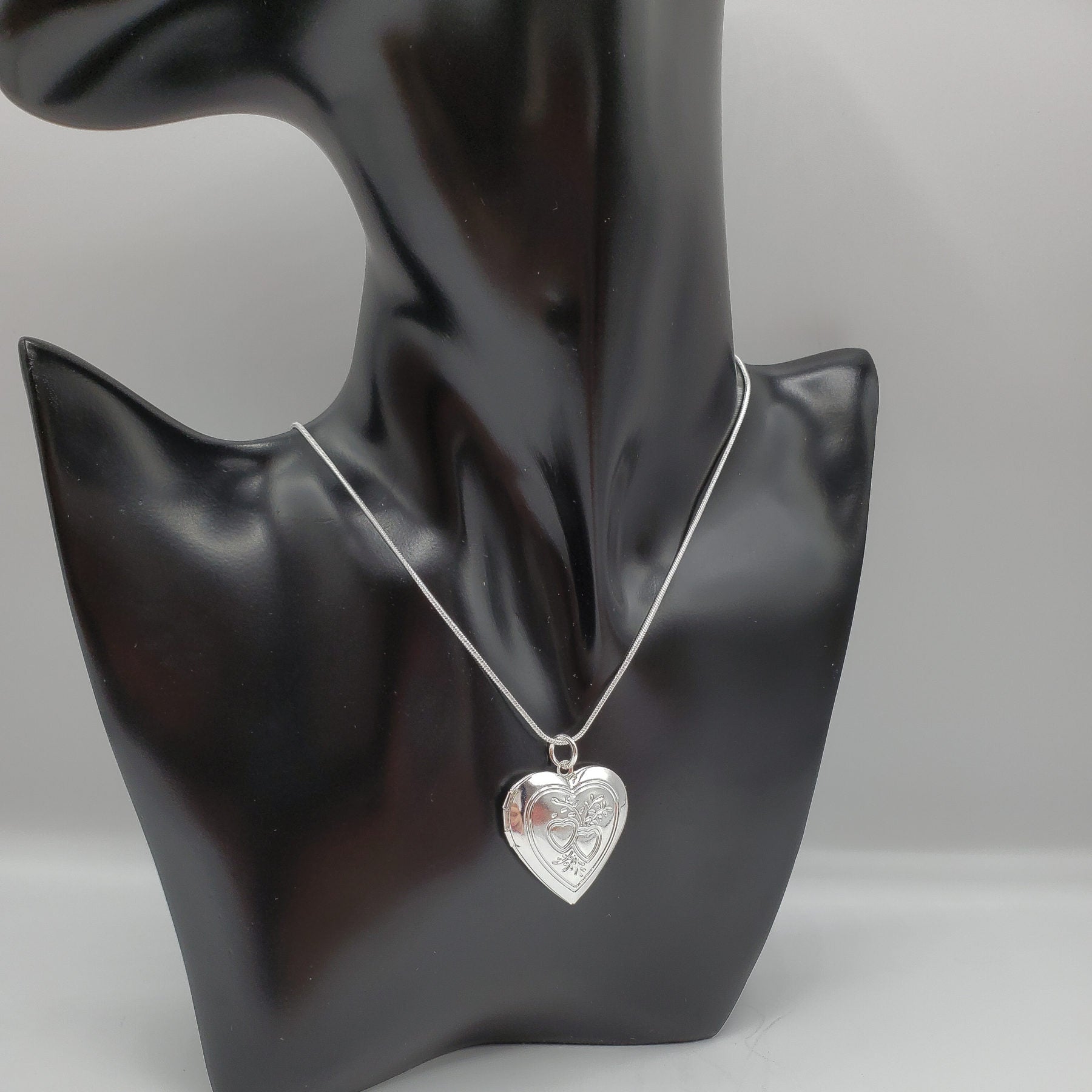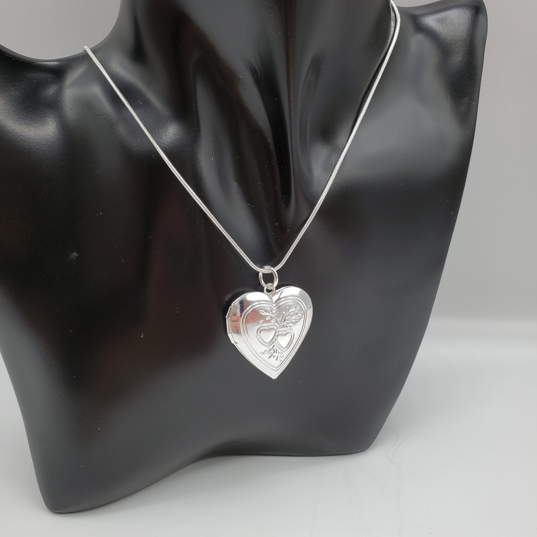 .925 Sterling Silver Heart locket with an 18" chain included. Heart locket is 30mm in length x 28mm in width. This is a beautiful way to keep someone you love close to your heart. Limited quantity with this one.