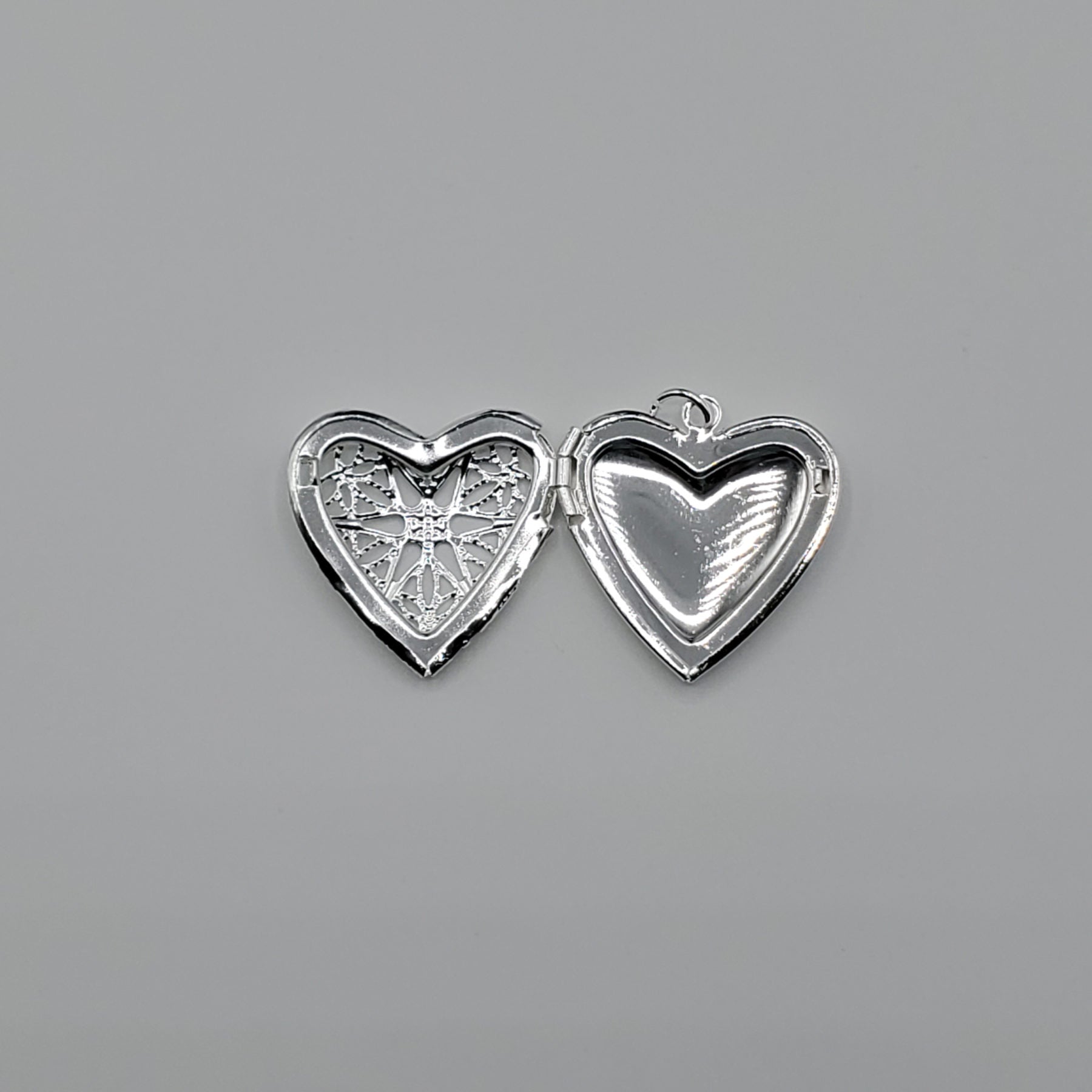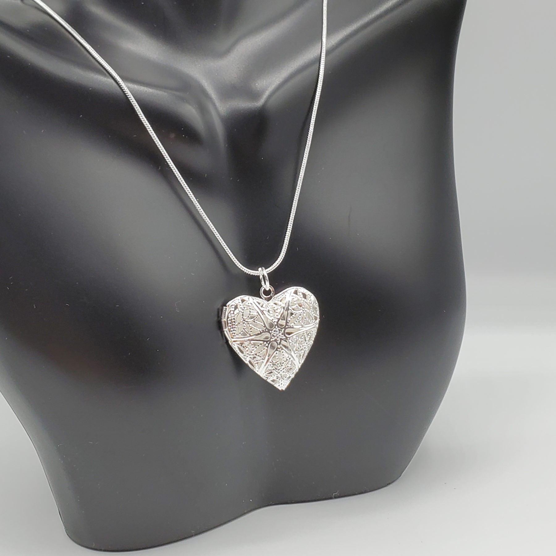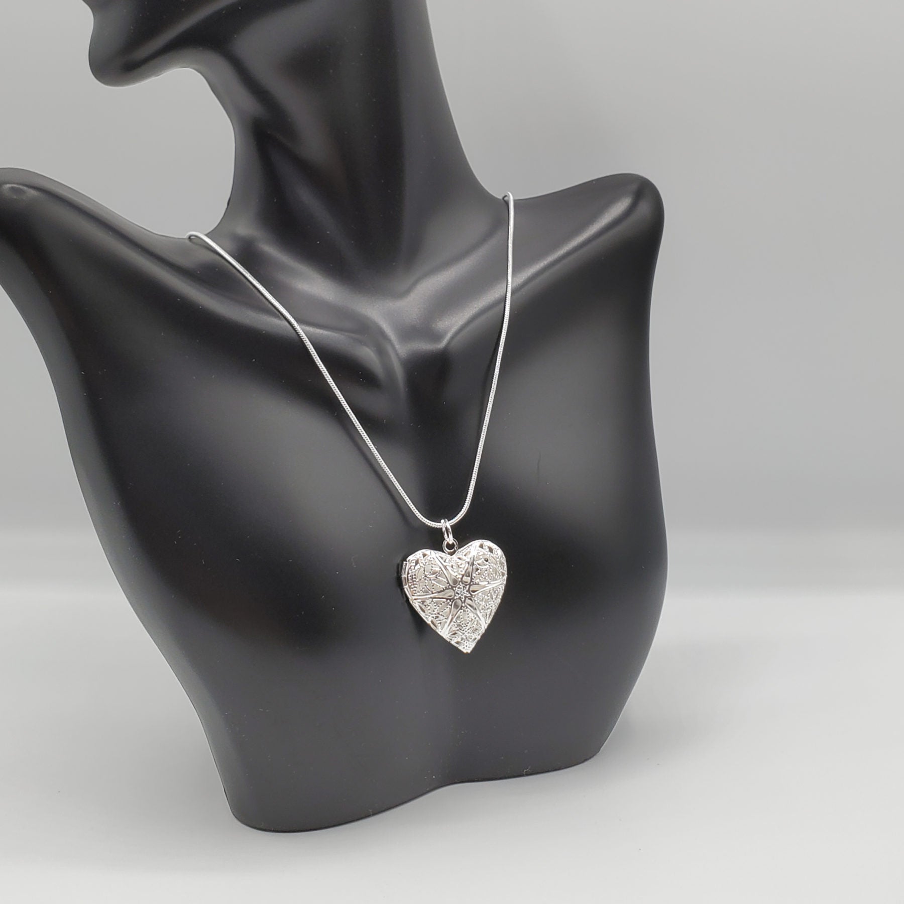 .925 Sterling Silver Heart locket on an 18" Omega chain