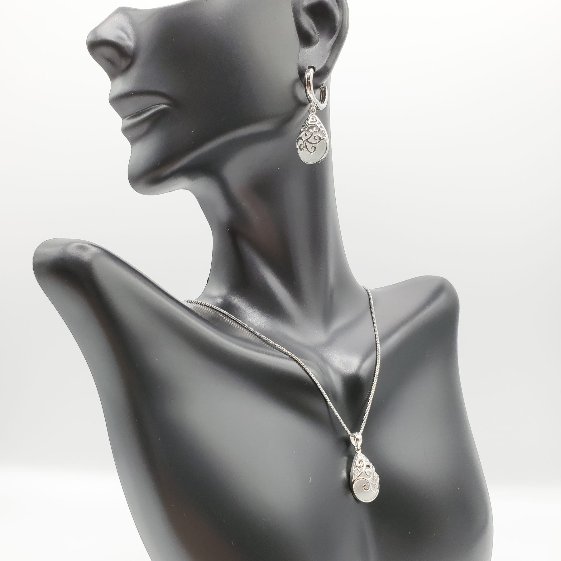 .925 Sterling Silver jewelry set with moonstone tears
