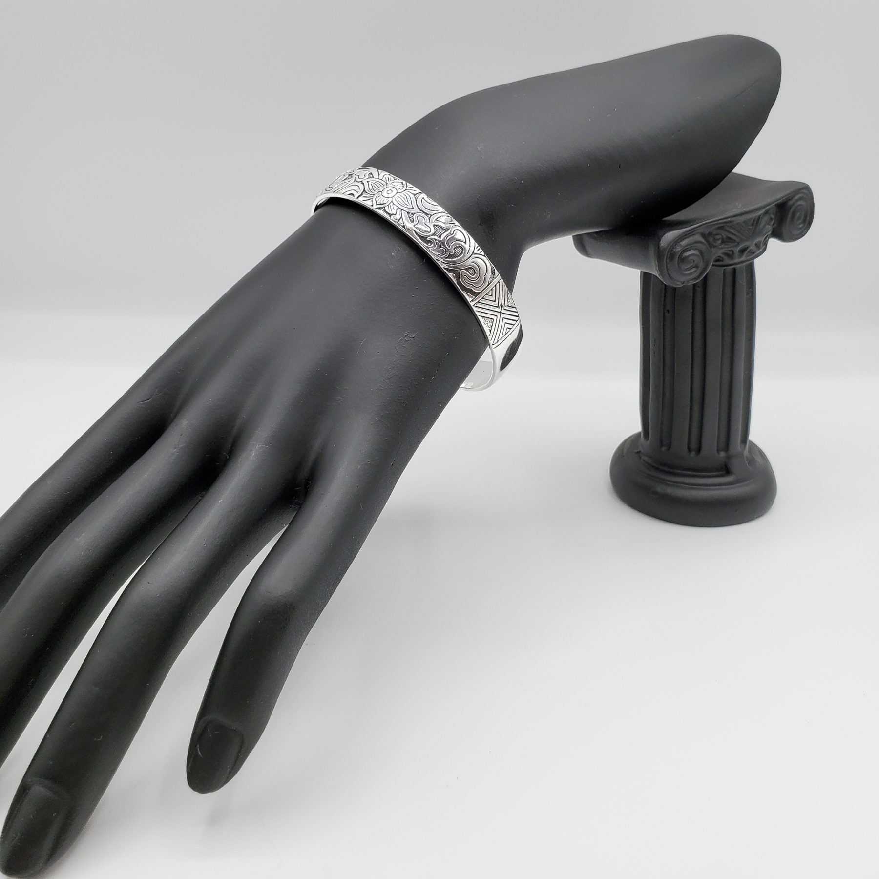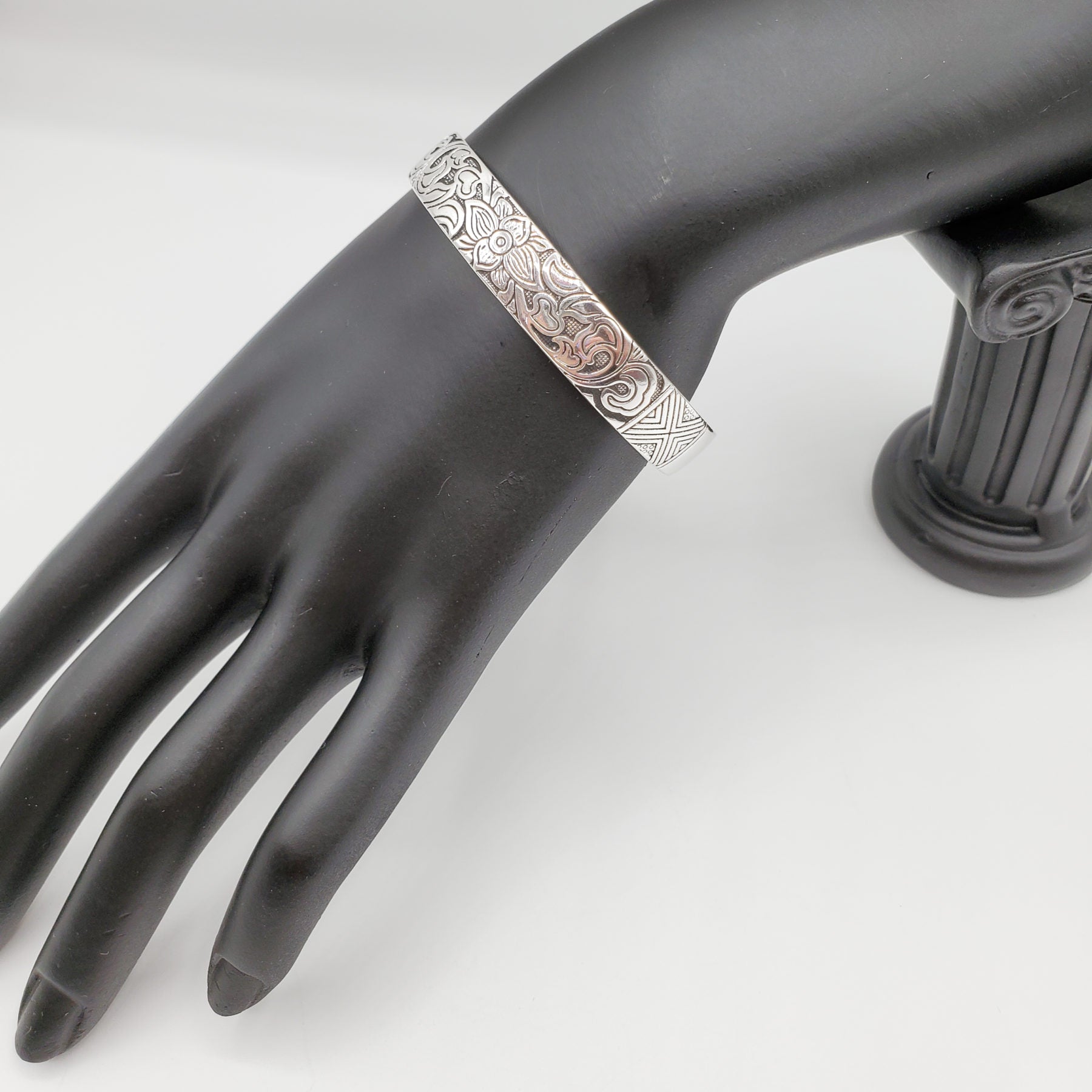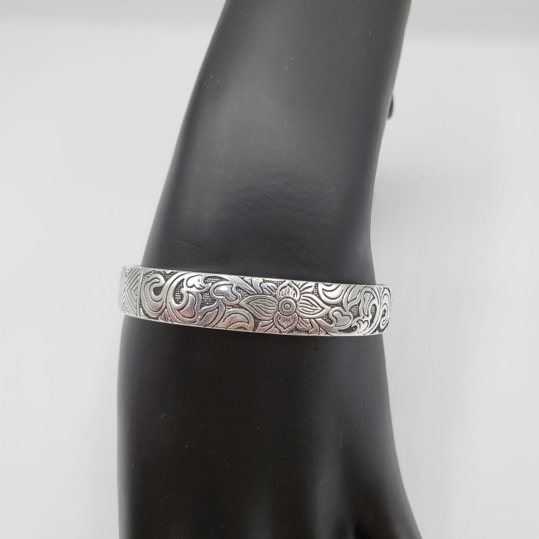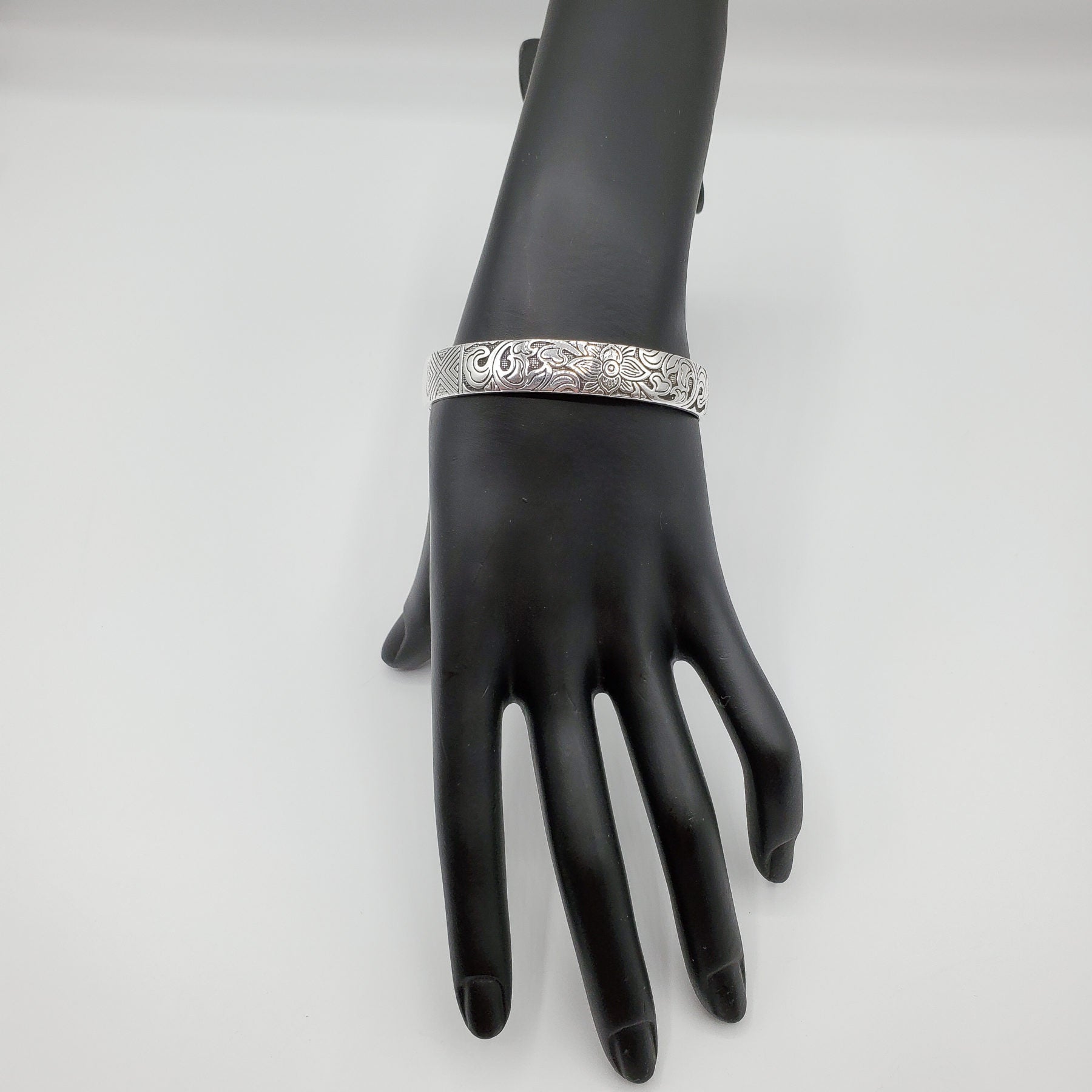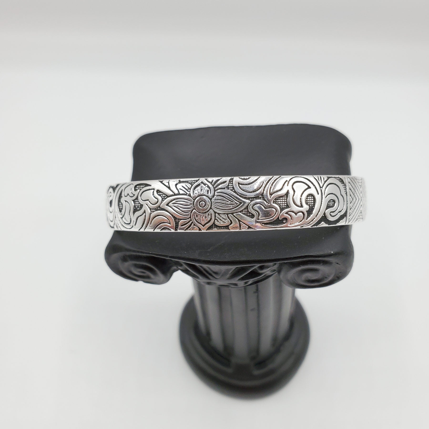 .925 Sterling Silver Lotus Flower Cuff Bracelet. This bracelet would be great for adding a little zing to a stacking group.