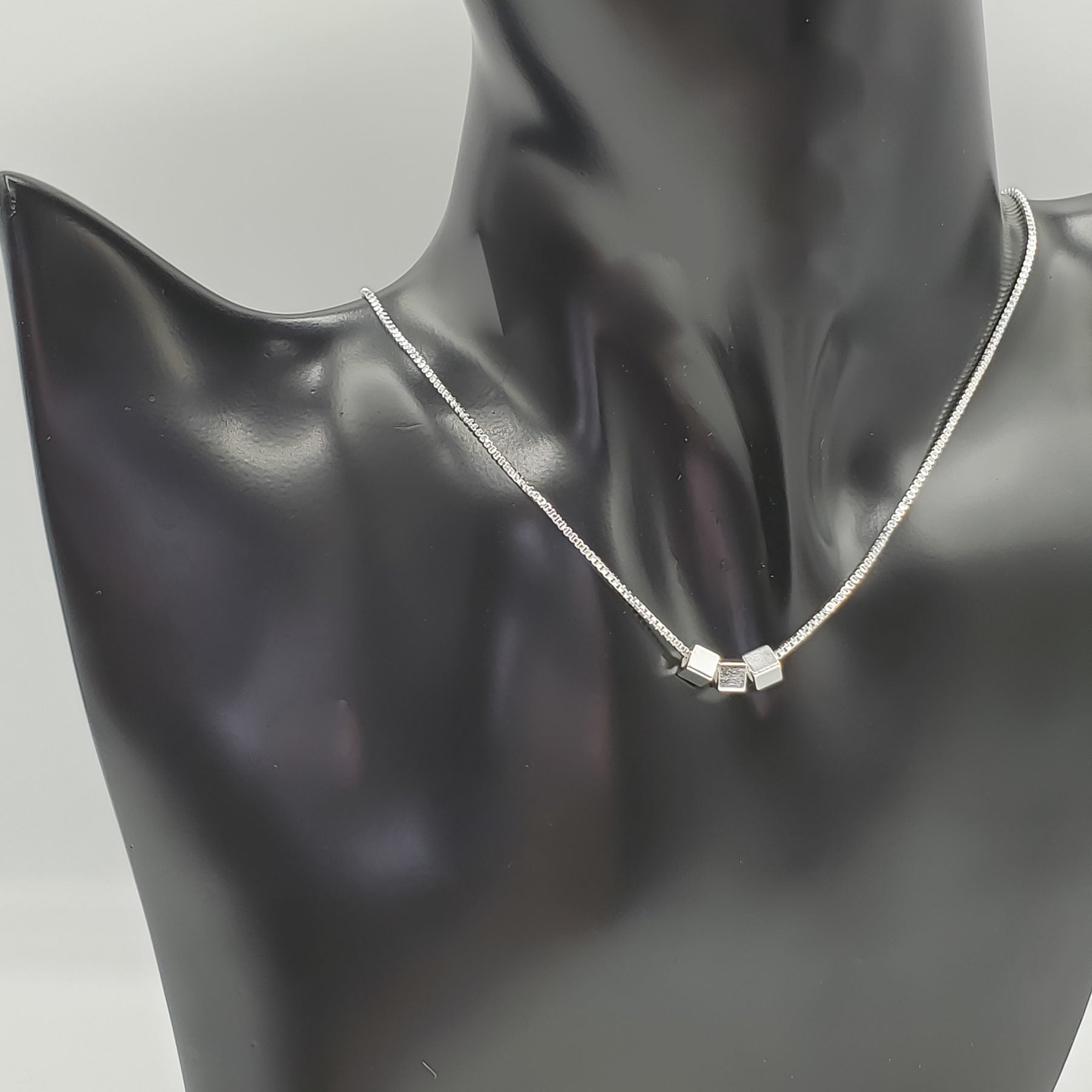 .925 Sterling Silver Minimalist 3 Square Necklace