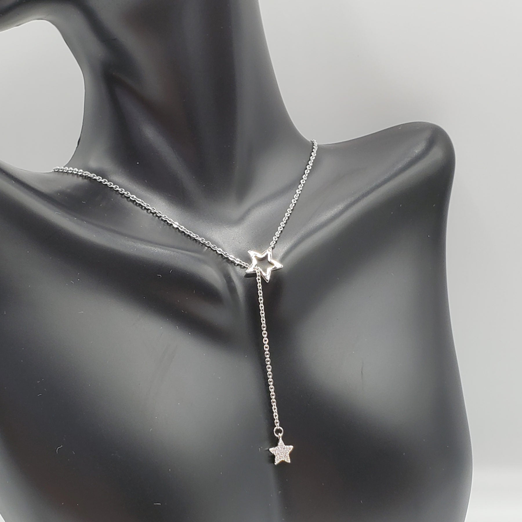 .925 Sterling Silver Star lariat Necklace 18" adjustable to 20"