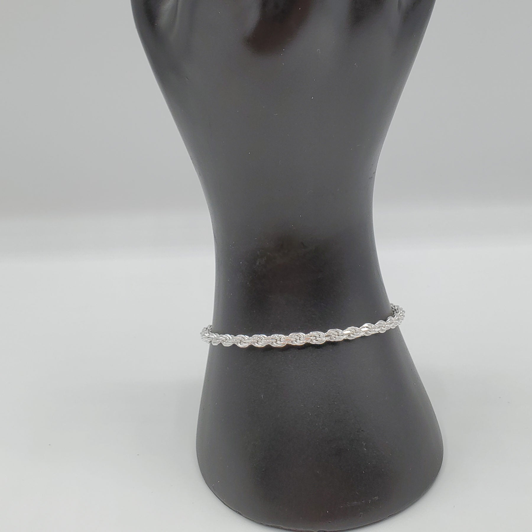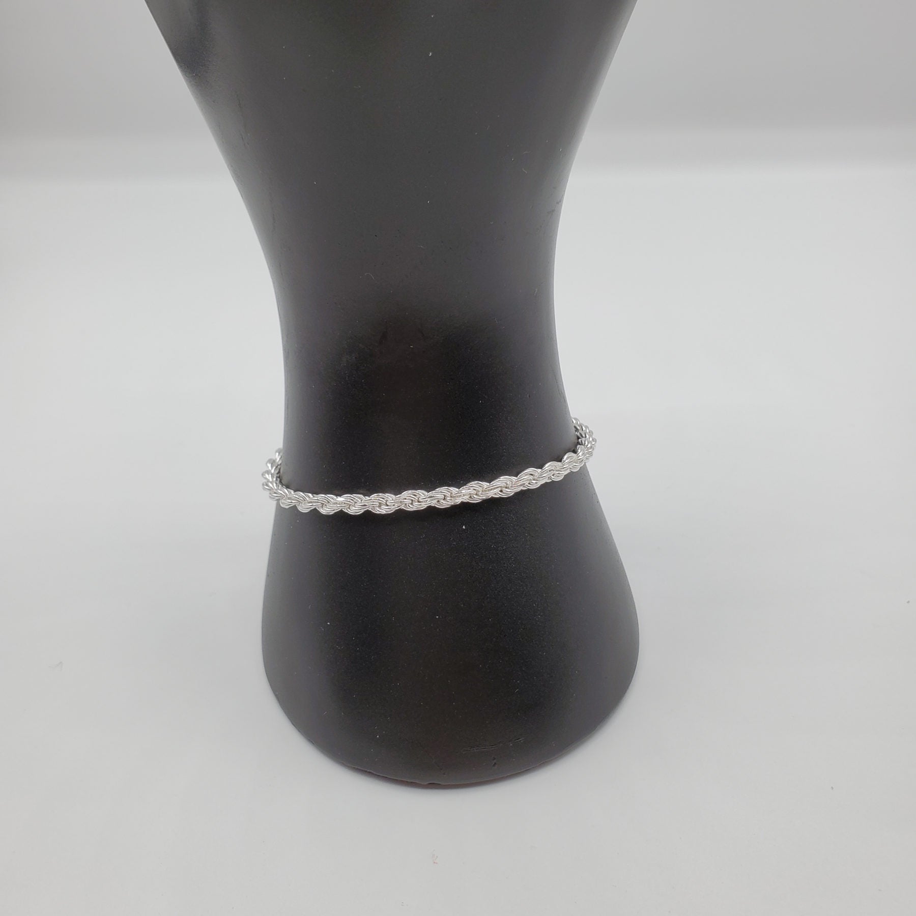 .925 Sterling Silver twisted rope chain bracelet 7" in length.