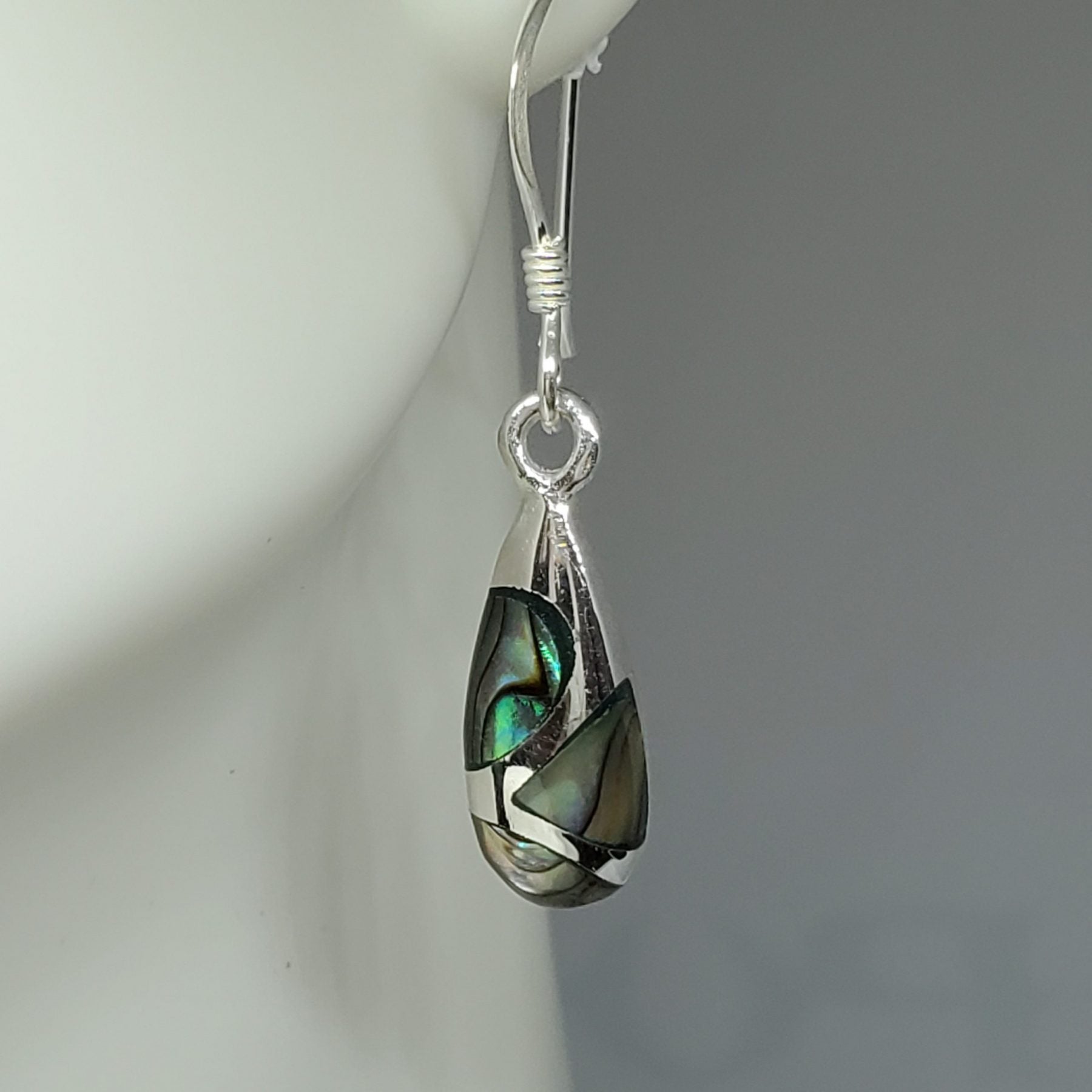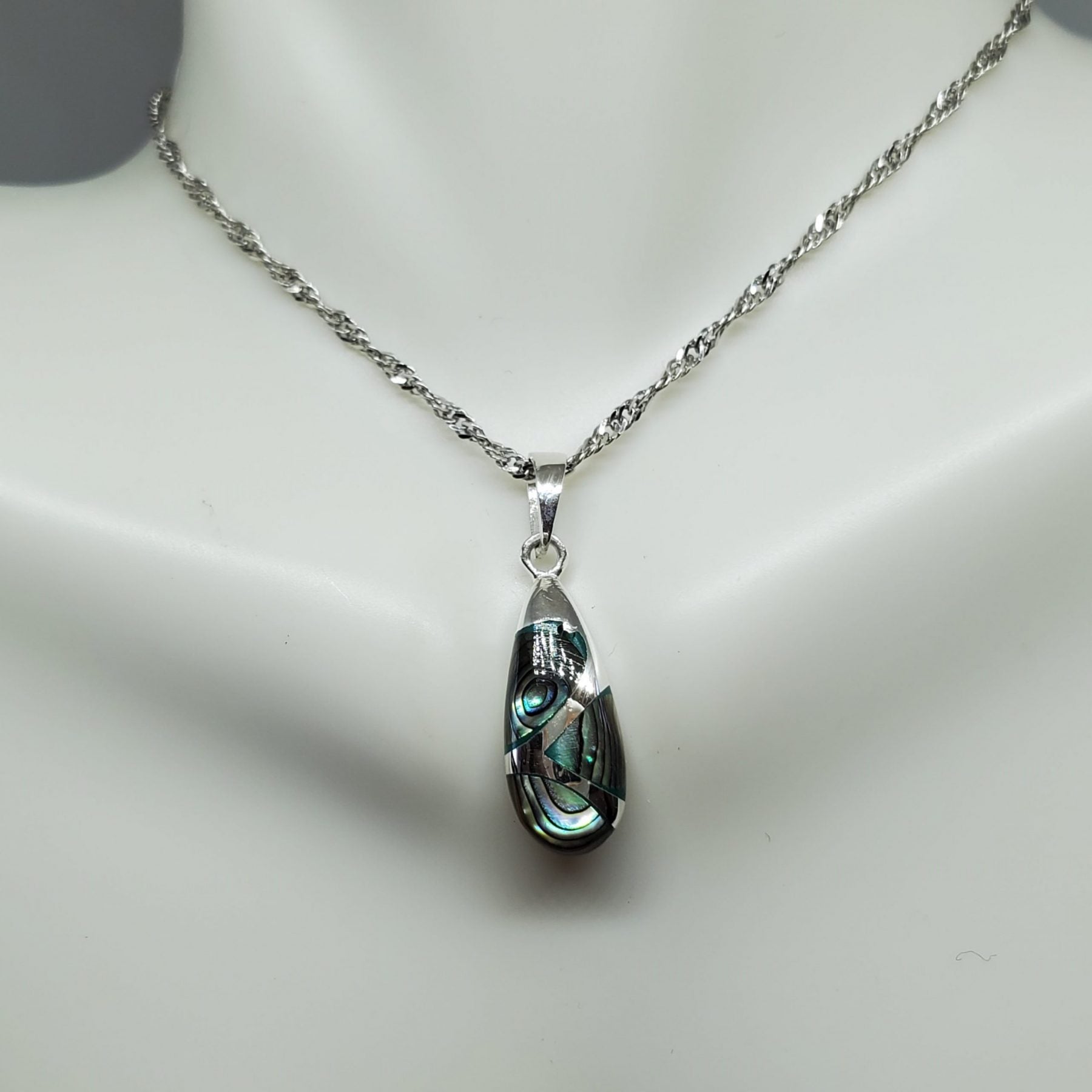 Abalone Teardrop earring (.49" in length) and pendant (.83" in length) .925 Sterling Silver set with 20" silver chain included. (chain shown not included with sale)