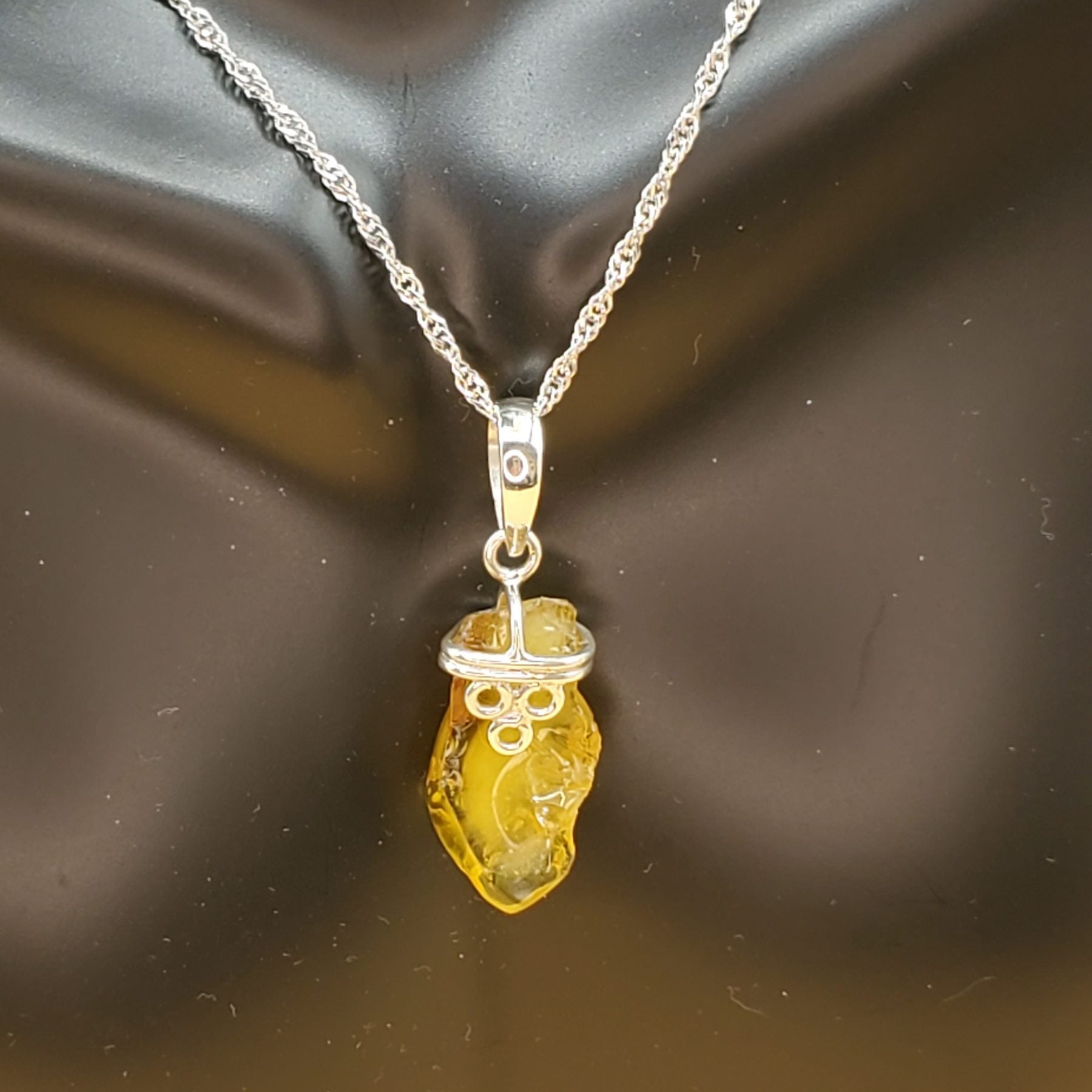 Amber Pendant accented with Sterling Silver filigree design .82" in length. Chain Shown is not sold with pendant but is item #334 in this inventory.