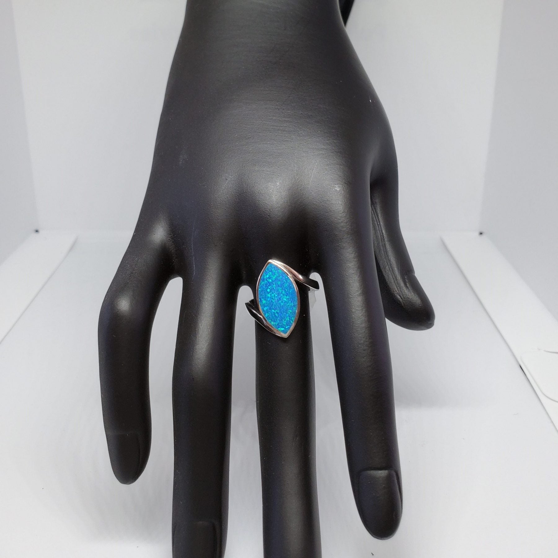 Blue Opal Marquise .925 Sterling Silver Ring Size 7