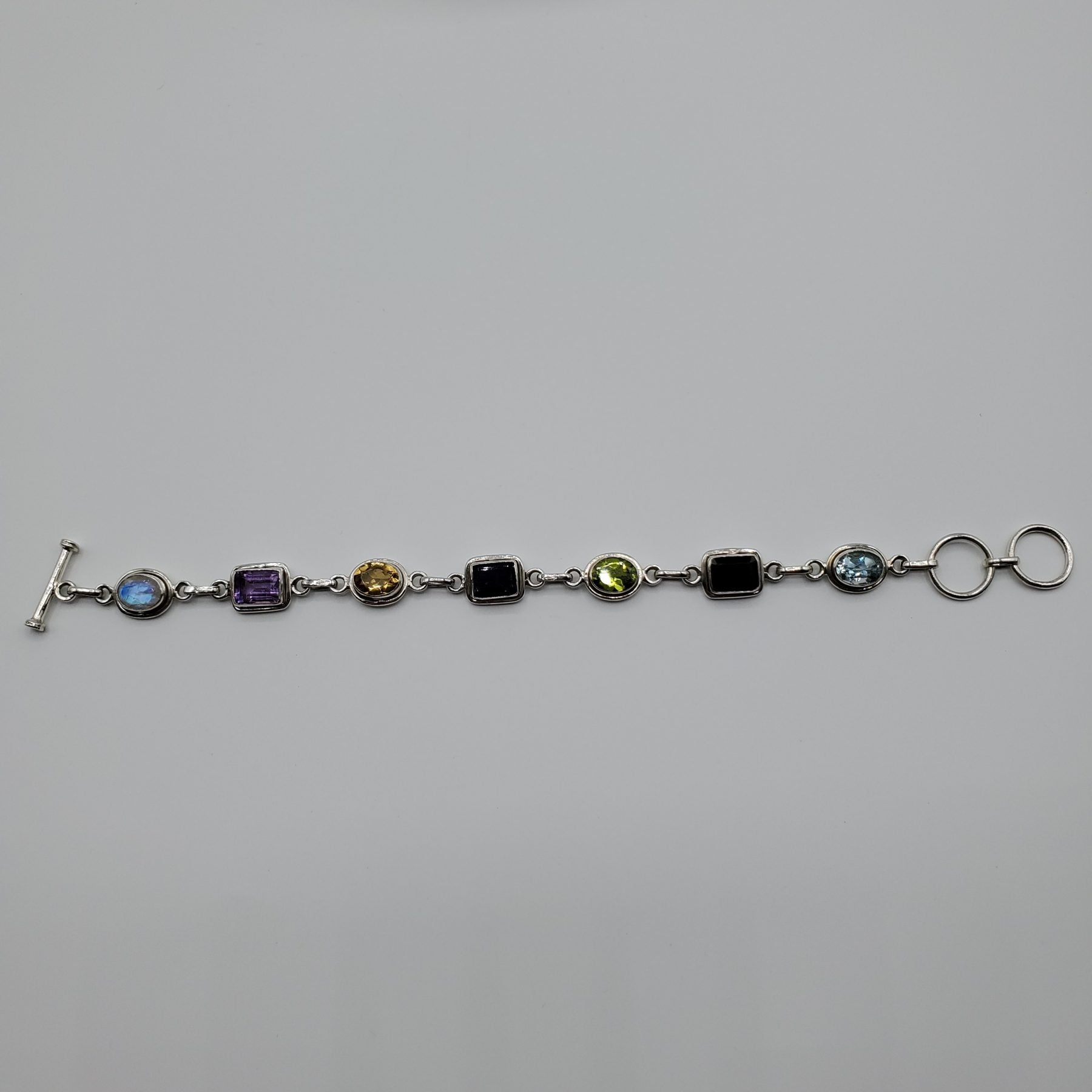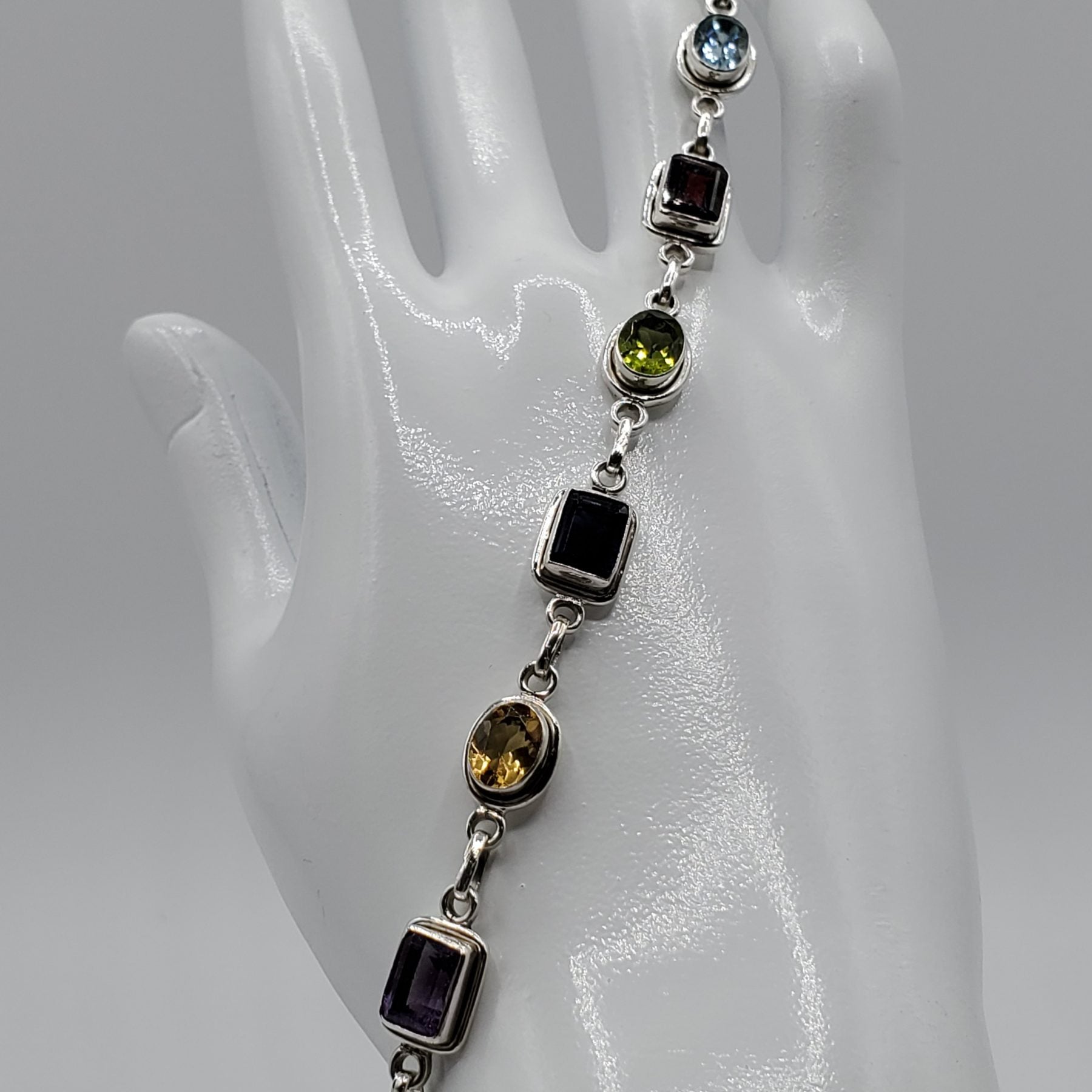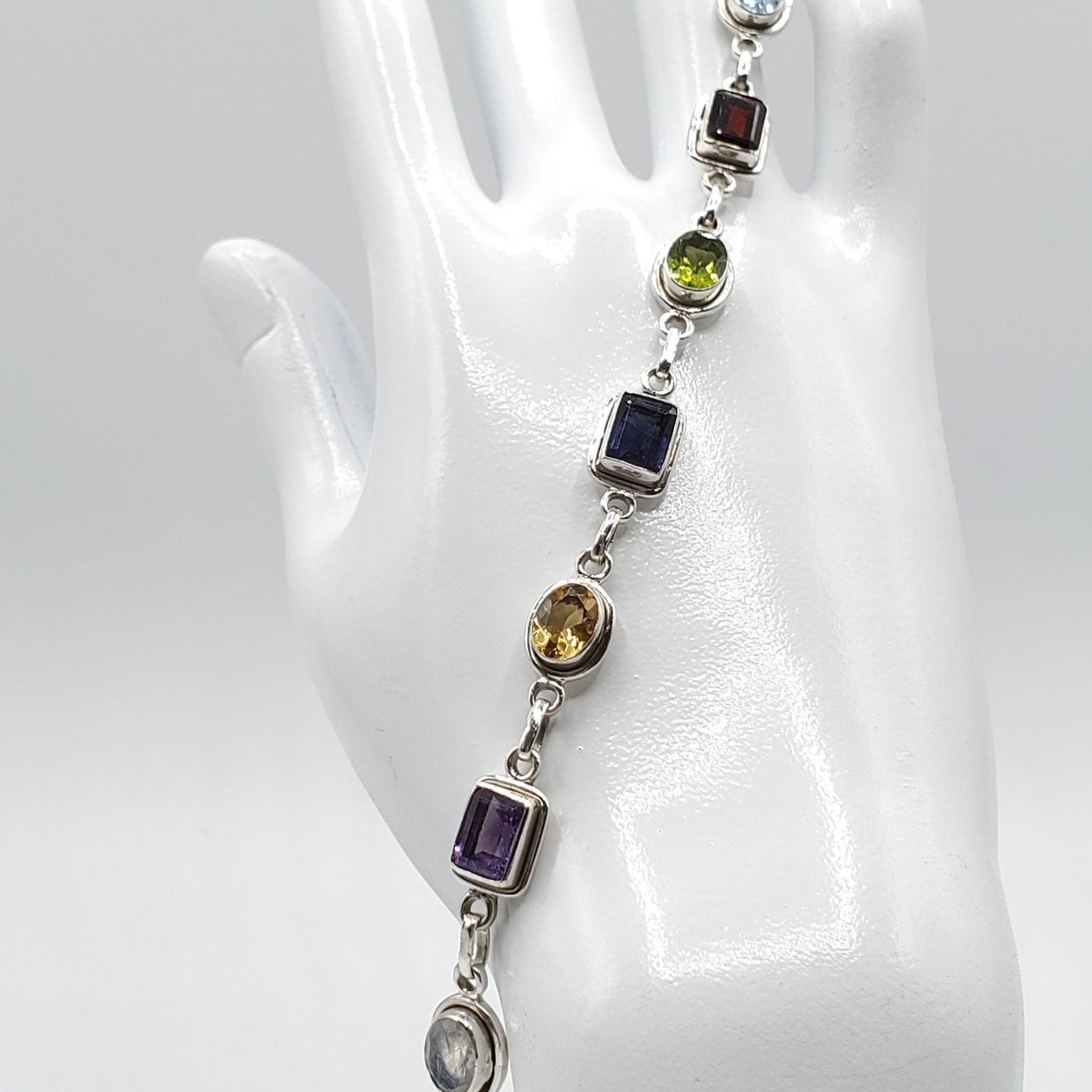.925 Sterling Silver Bracelet with Blue Topaz, Garnet, Peridot, Iolite, Citrine, Labradorite, Amethyst, and Moonstone.