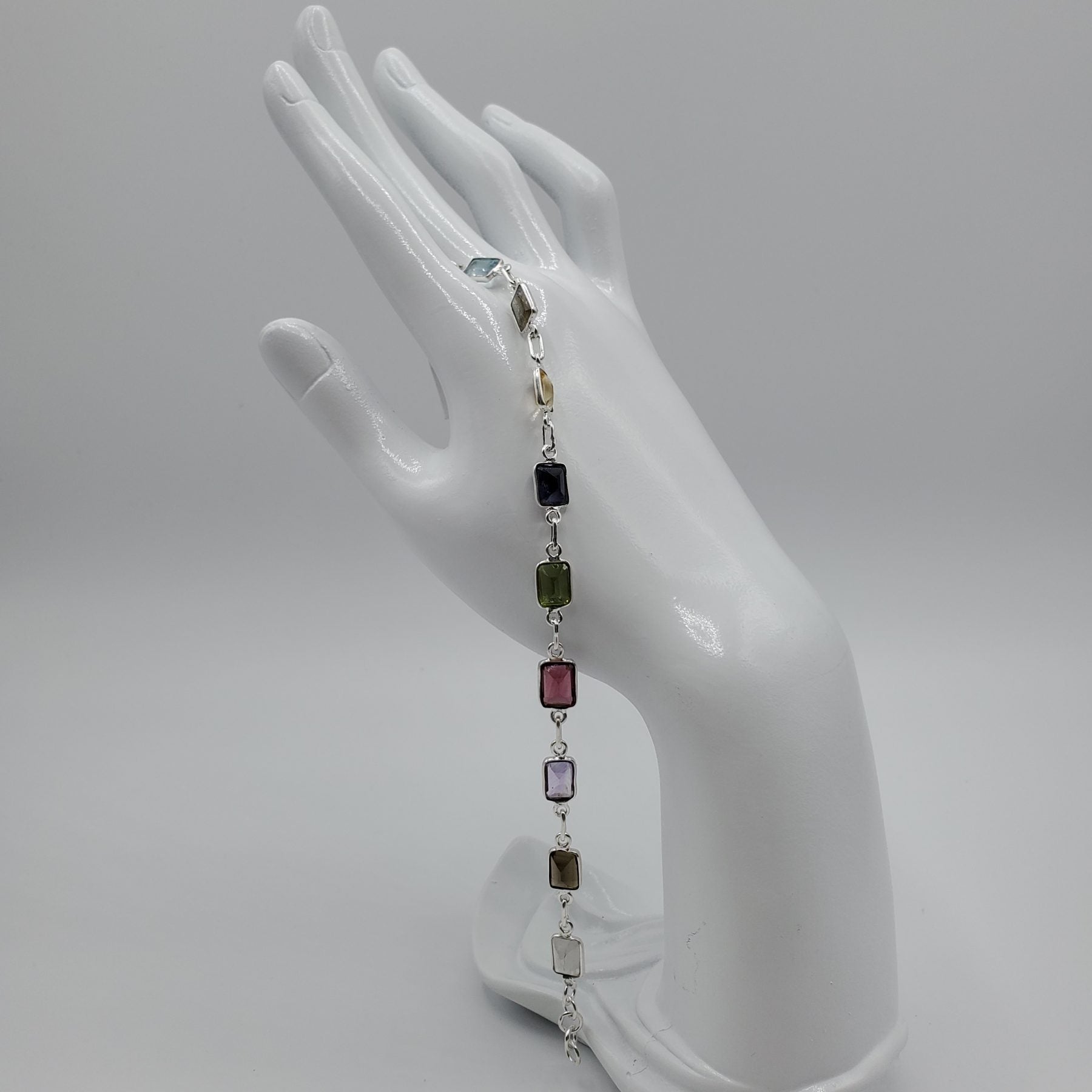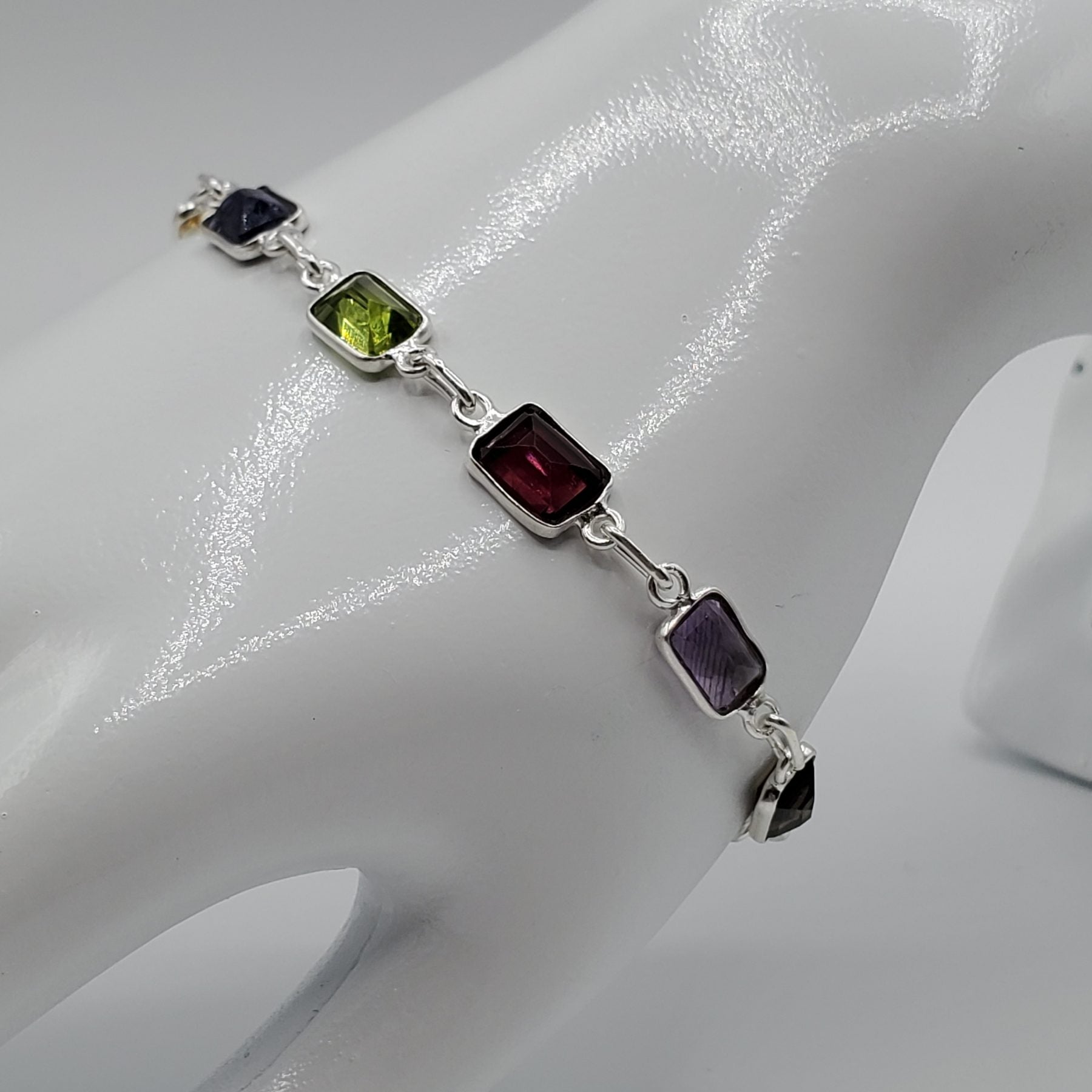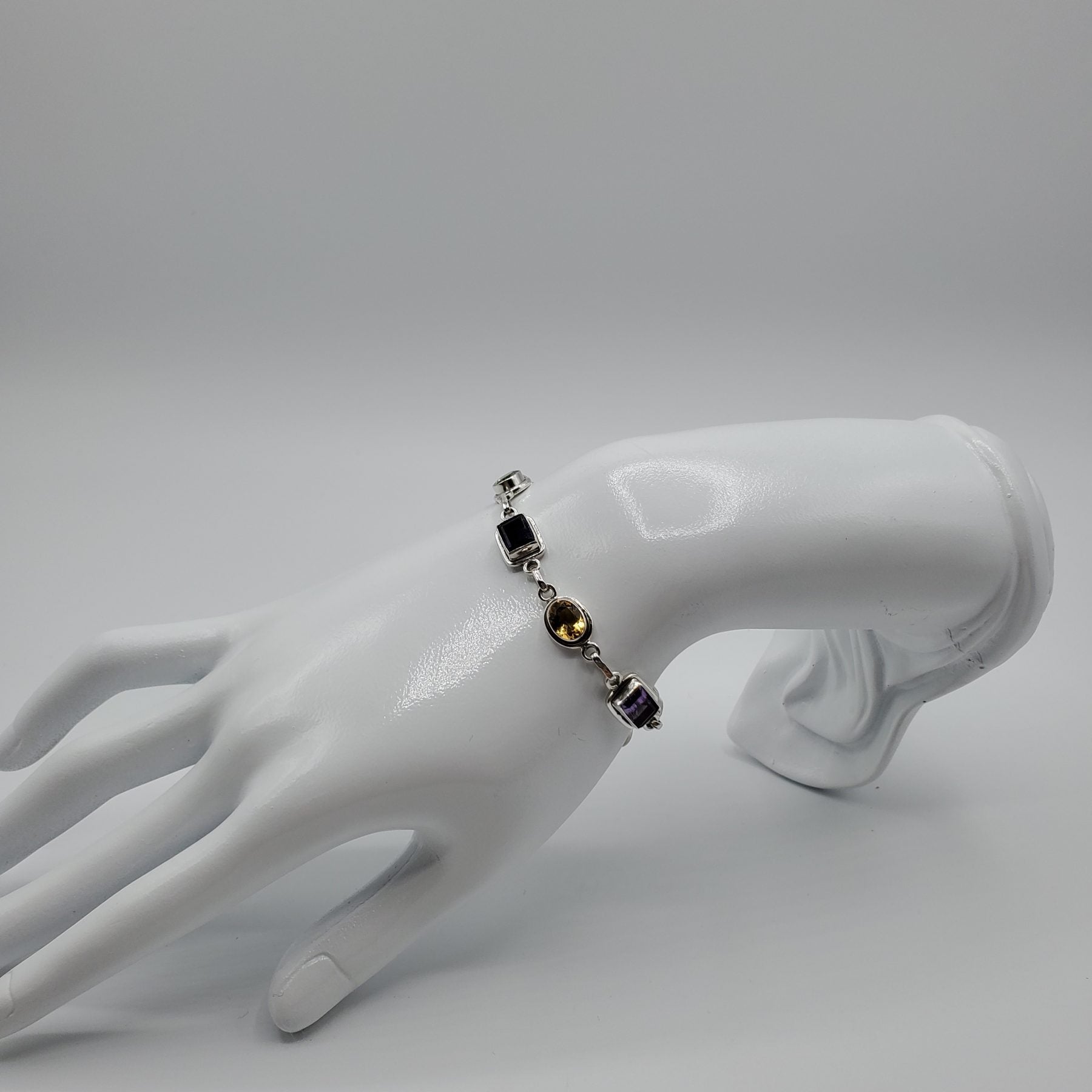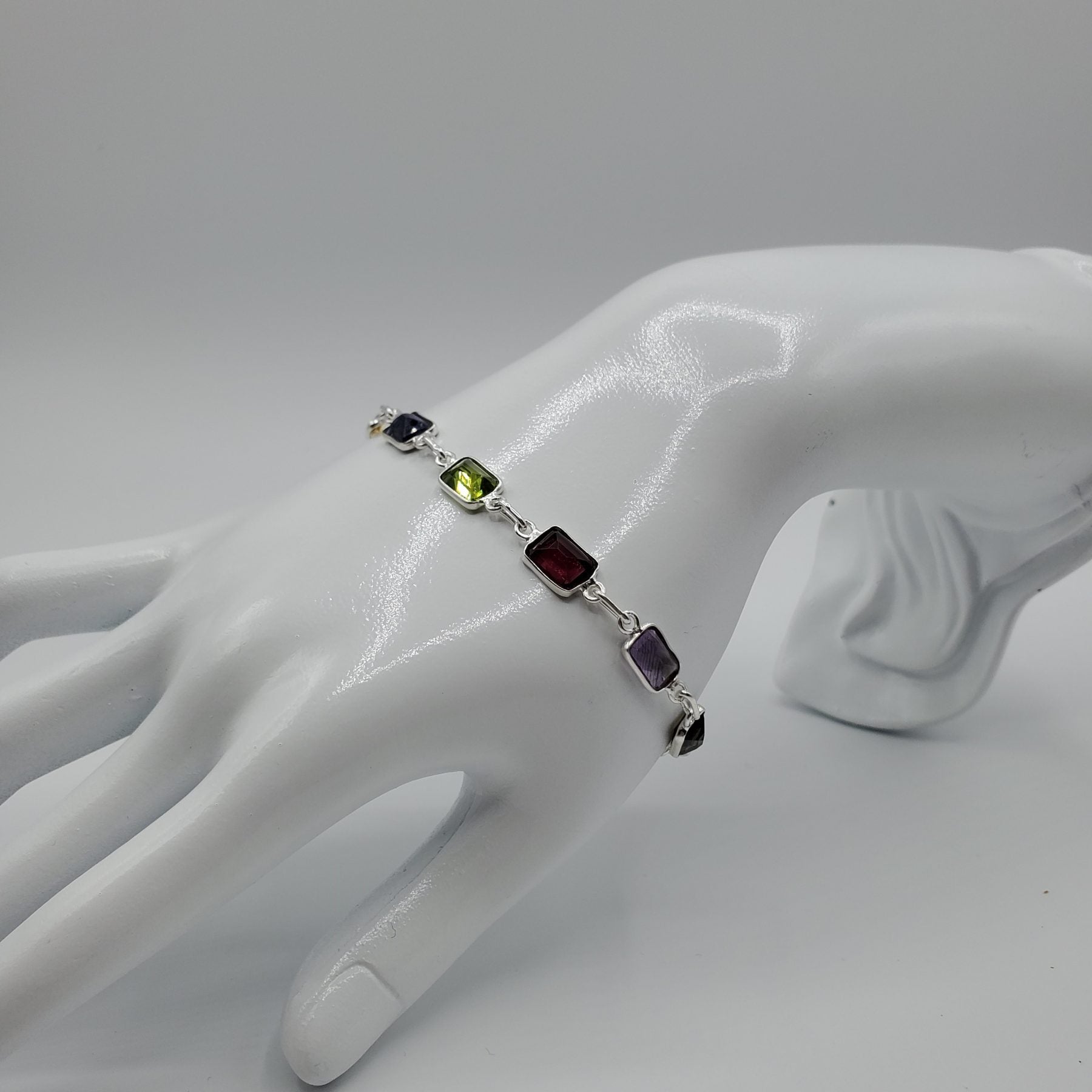 .925 Silver Blue Topaz, Labradorite, Citrine, Iolite, Peridot, and Garnet Bracelet. Bracelet is 7.5" in length with adjustable links.