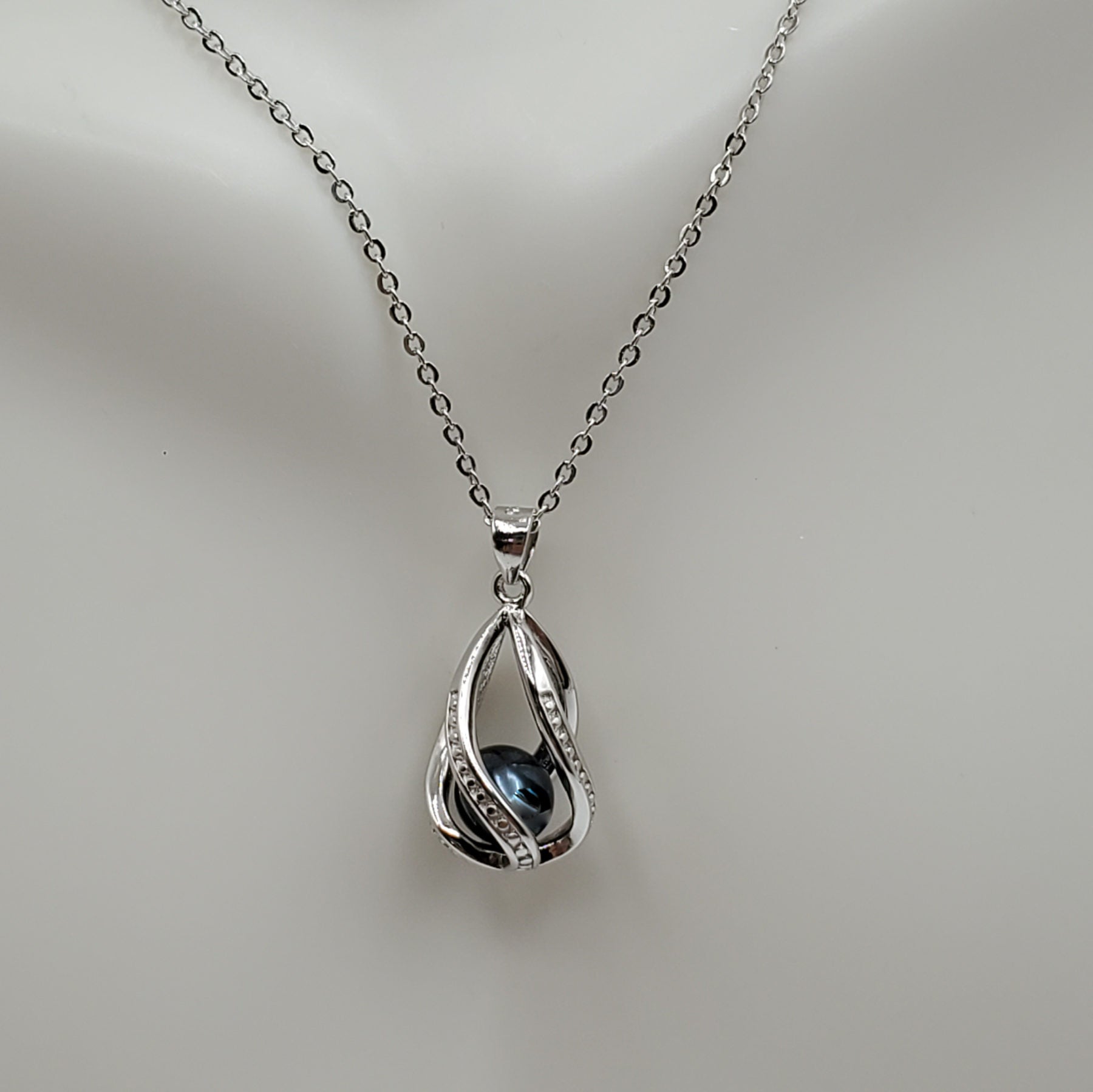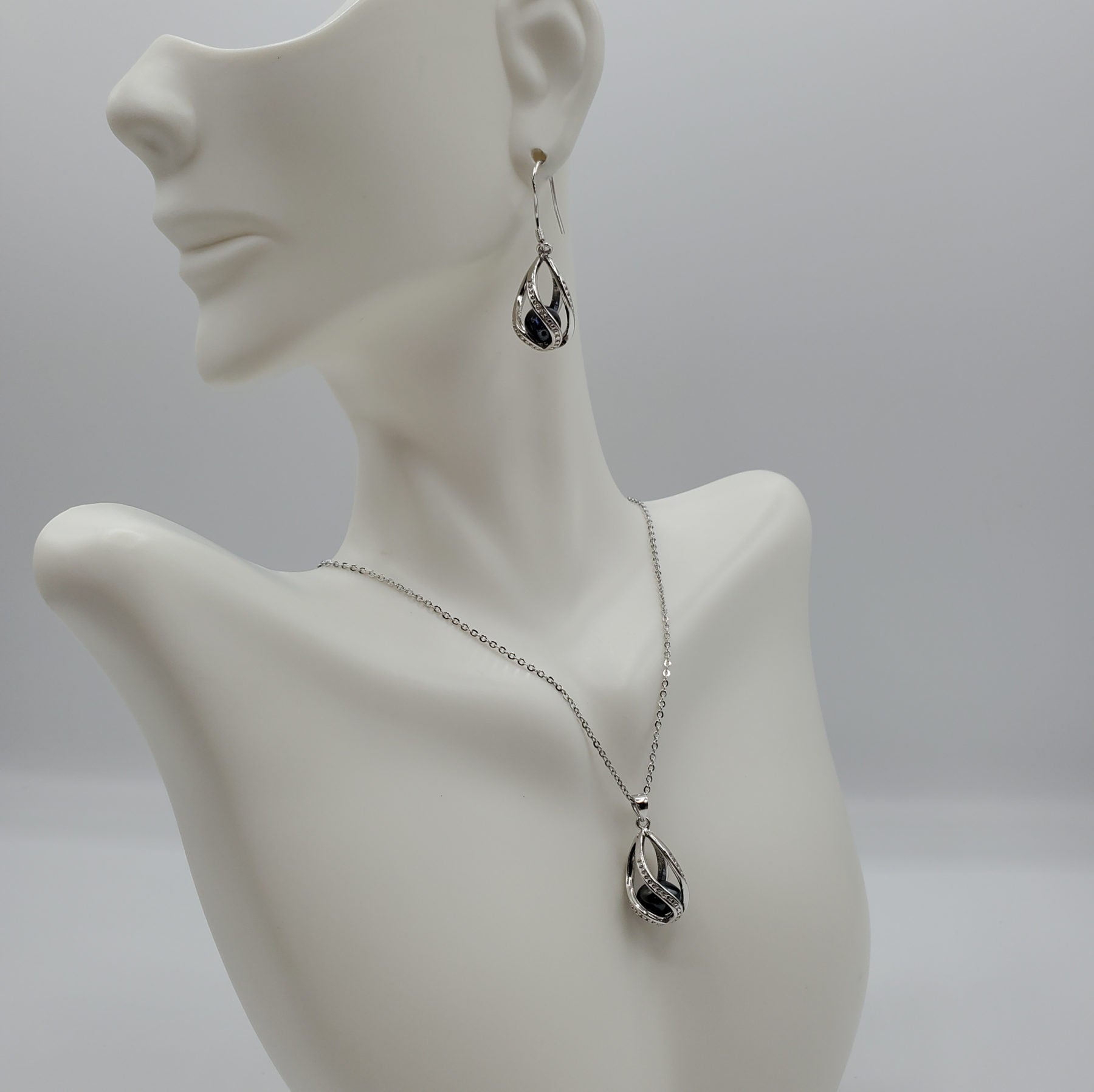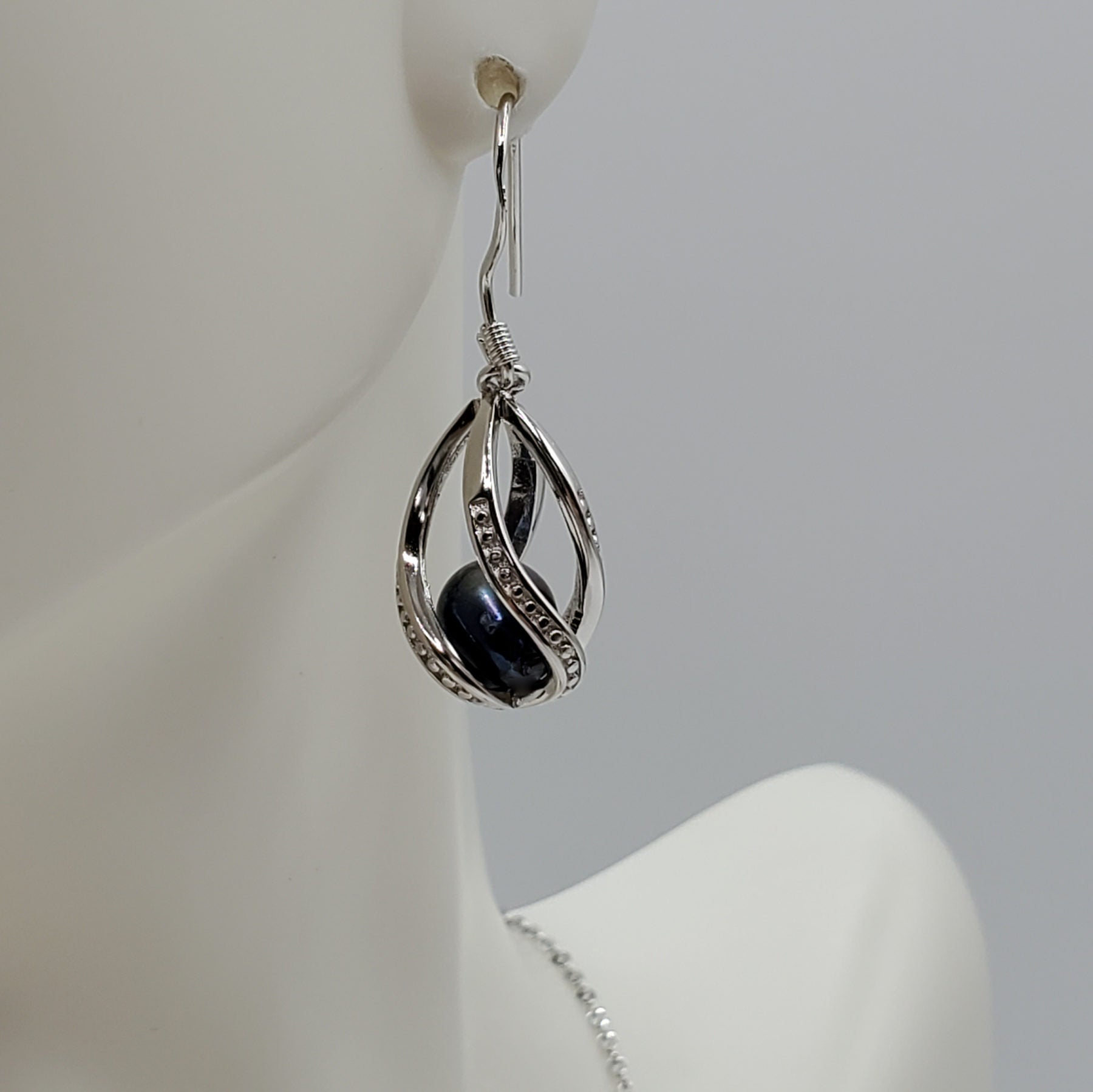Bohemian style Black pearl necklace and earring gift set in .925 Sterling Silver.