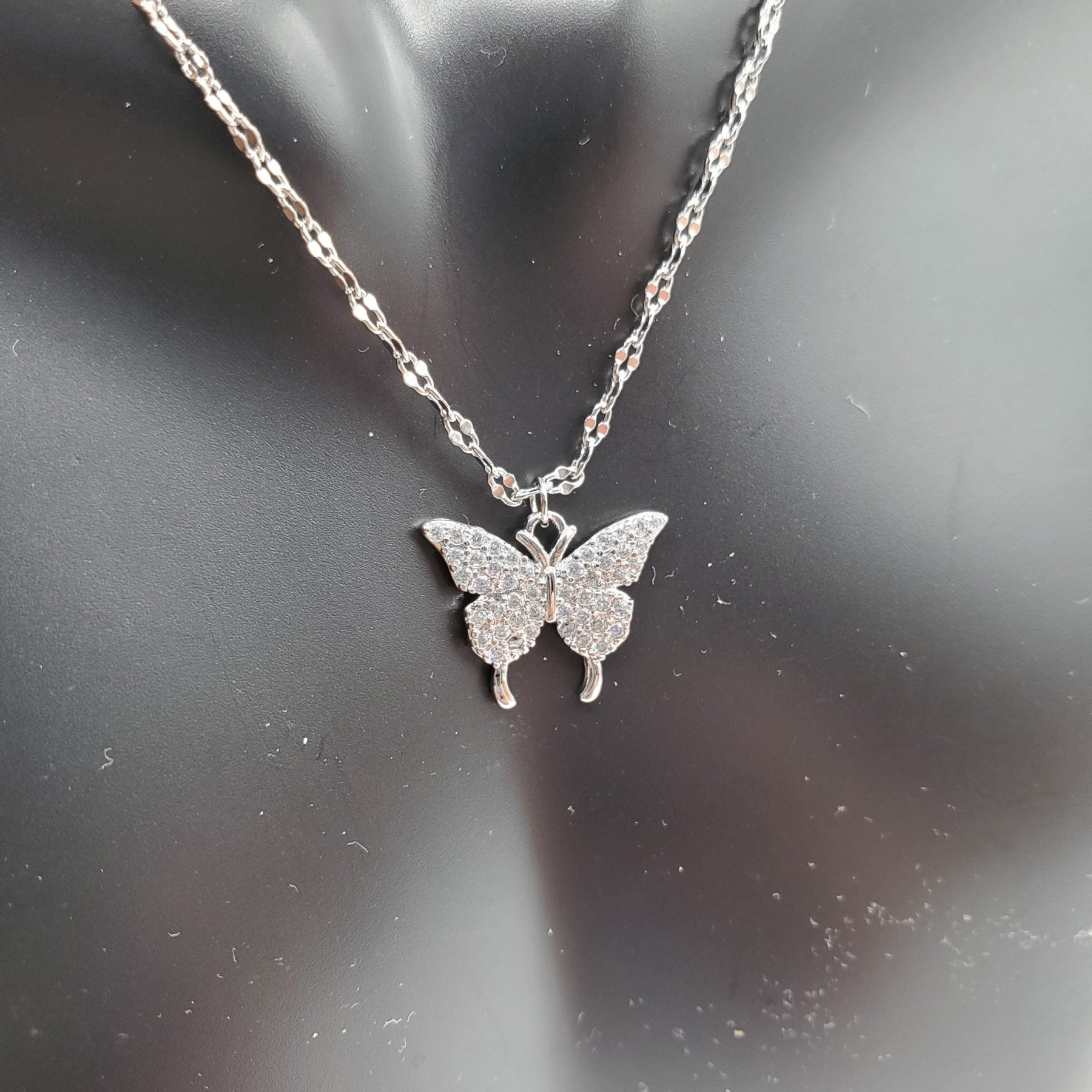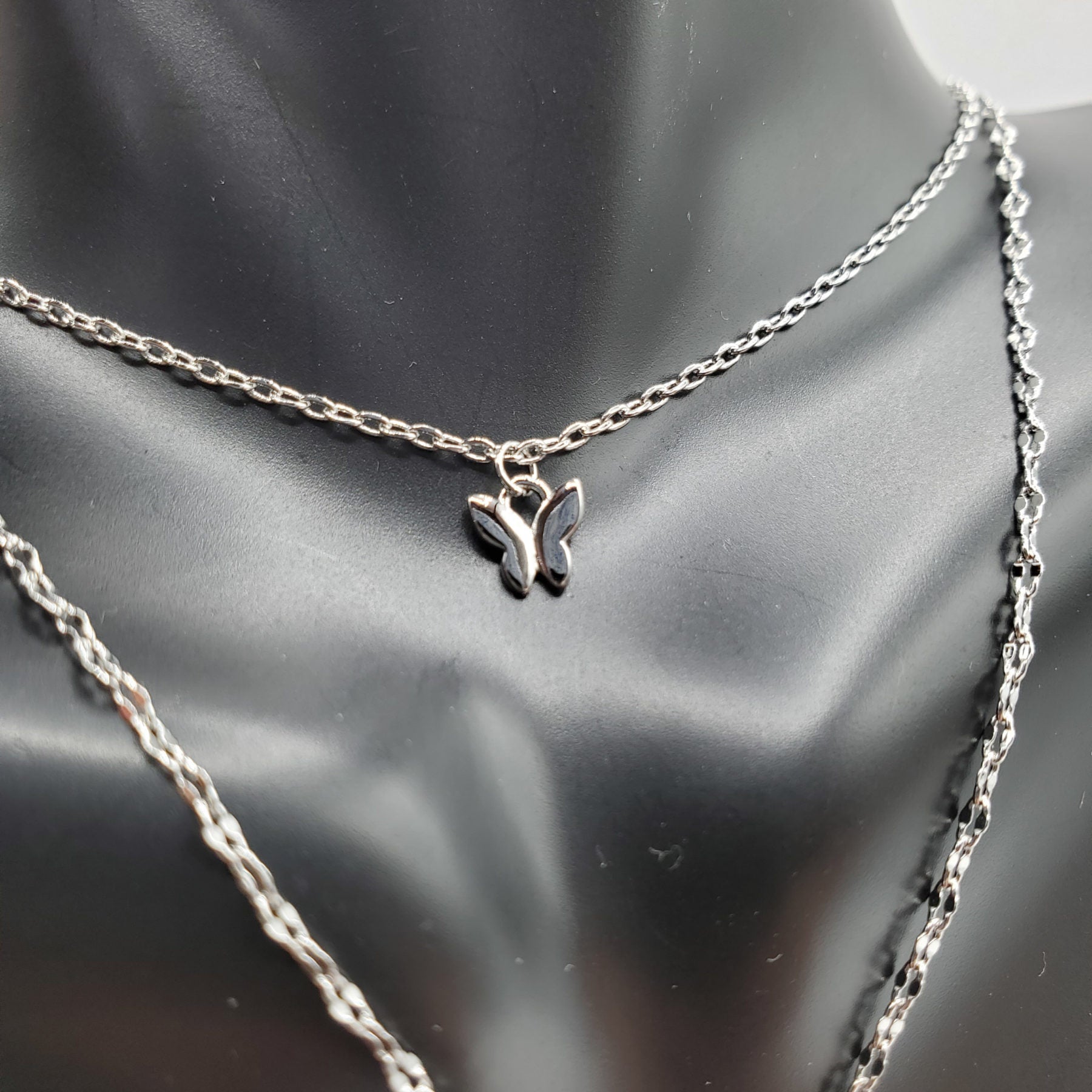 Delicate . 925 Sterling Silver double layered Butterfly Necklace