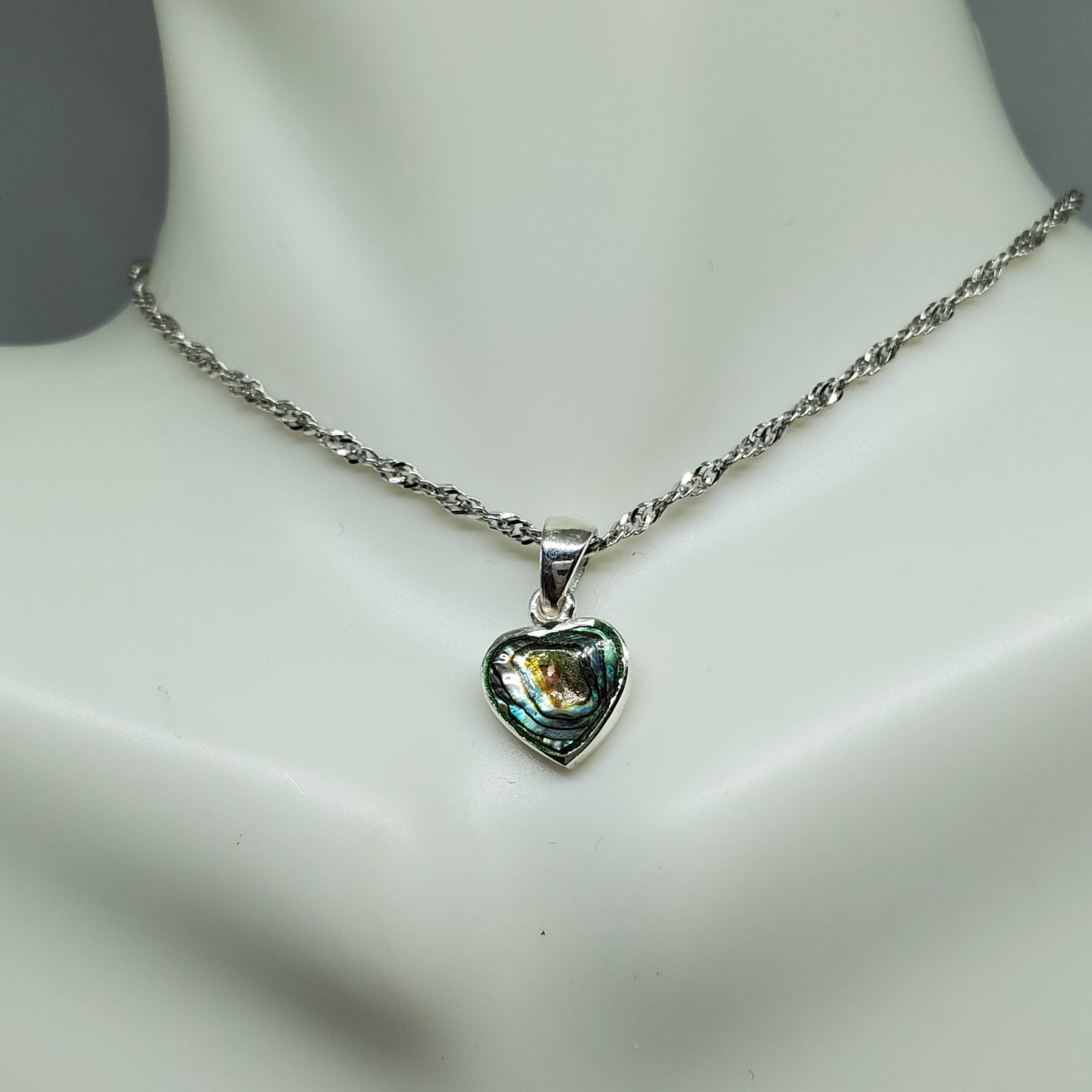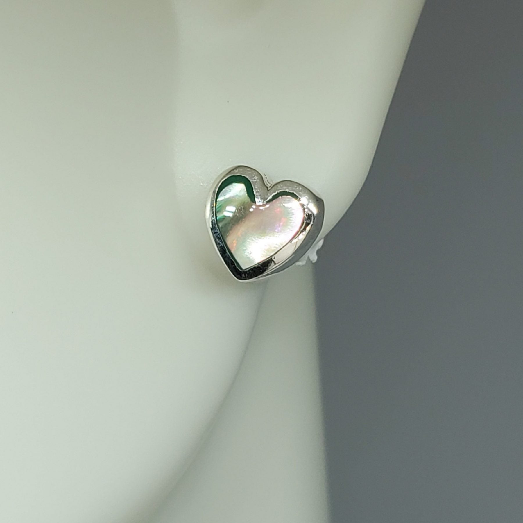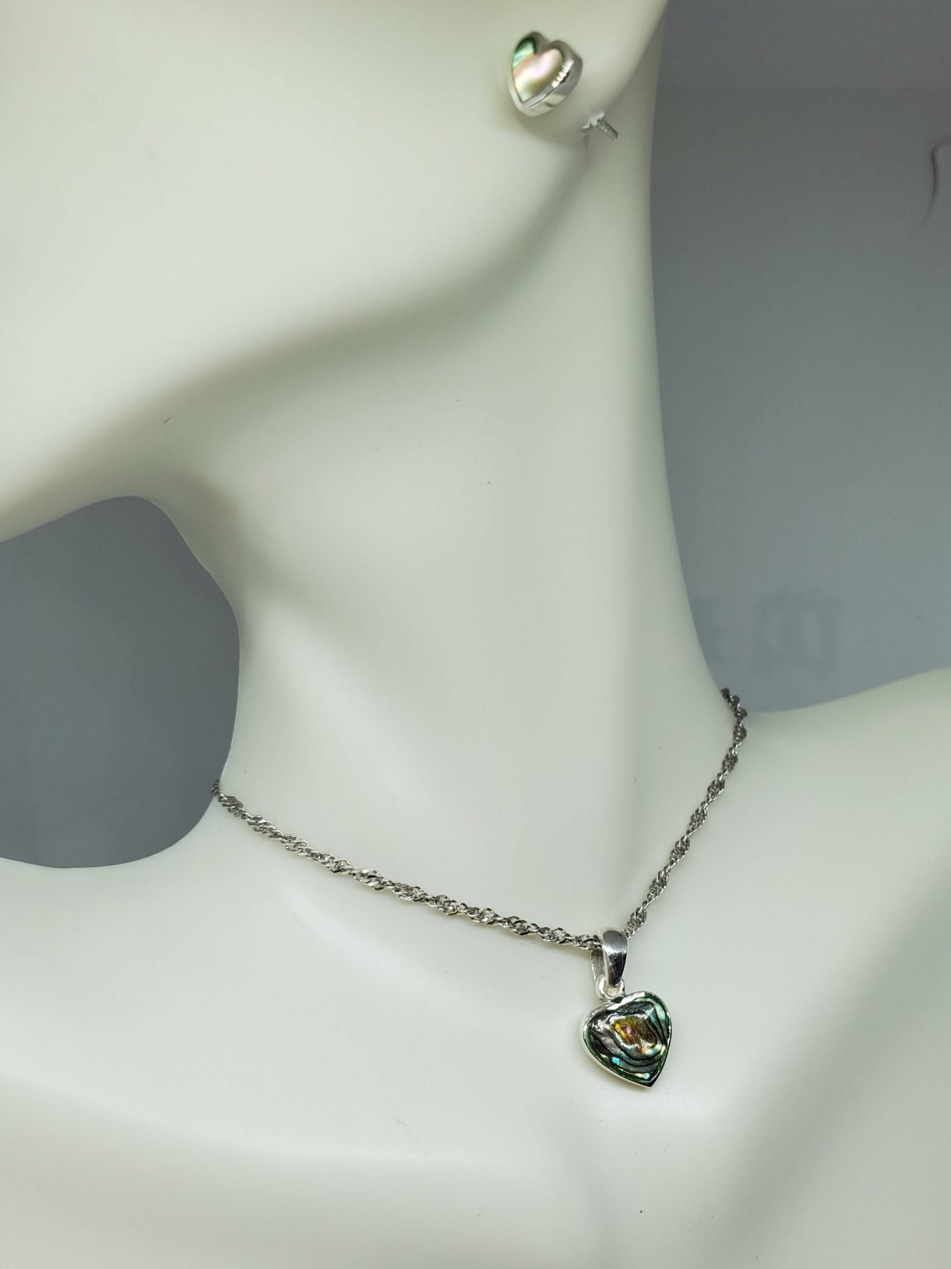 Delicate Abalone Heart Earring (.14" length) and Pendant (.57 " in length) .925 Sterling silver Set with 20" silver chain. (chain shown not included with sale but can be purchased separately it is item #334.