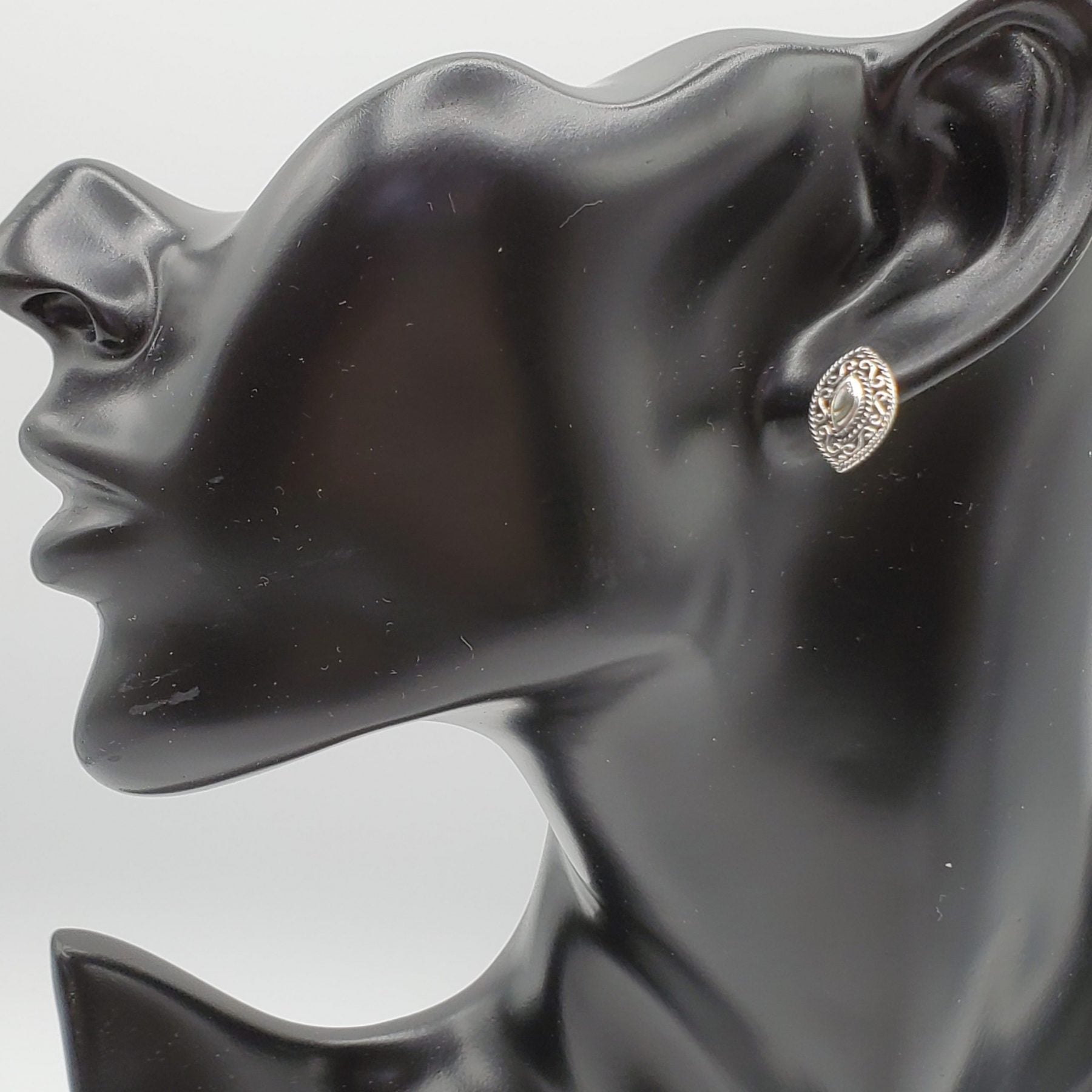 Delicate Abalone Marquise Filigree .925 sterling Silver Earring Studs. 11.8mm in length