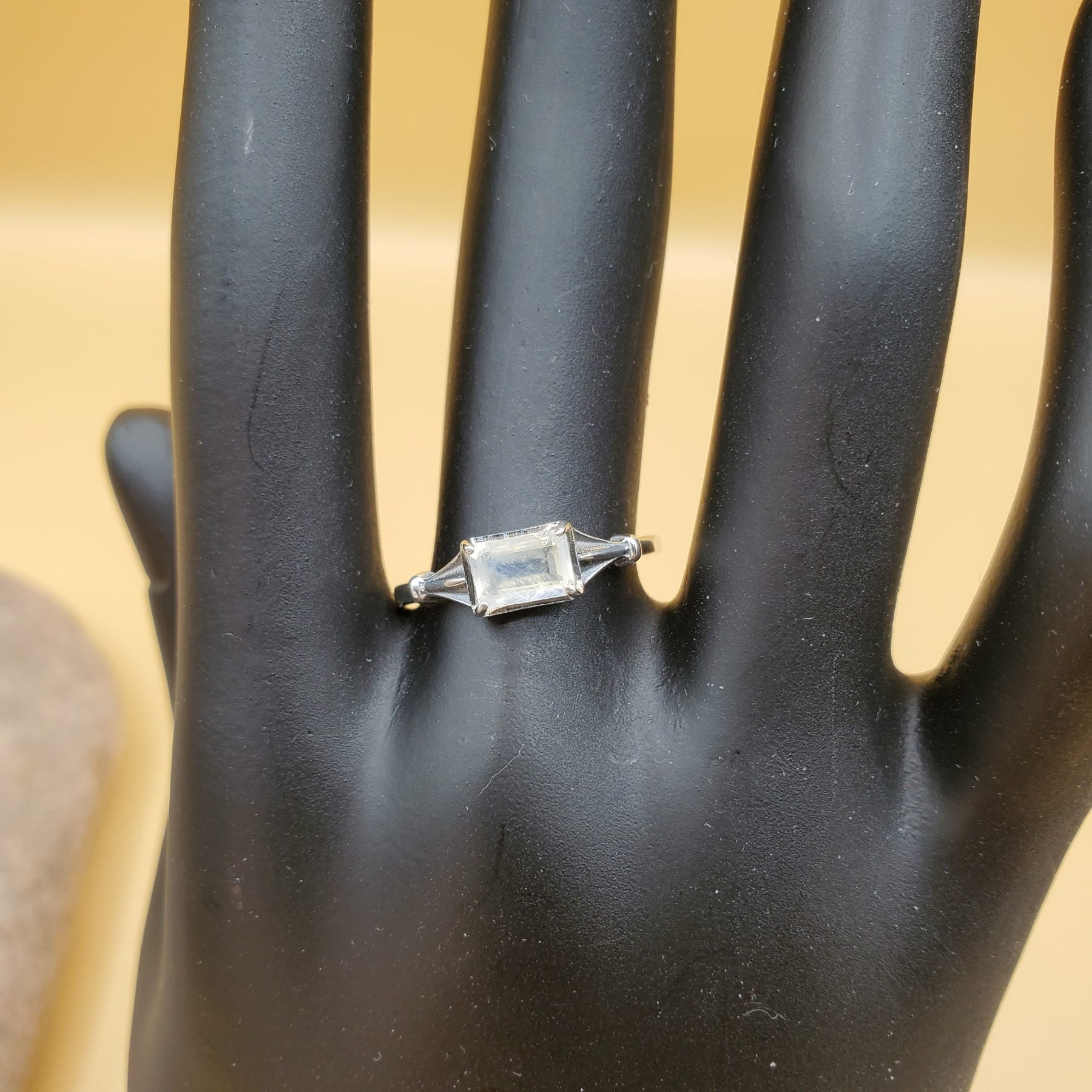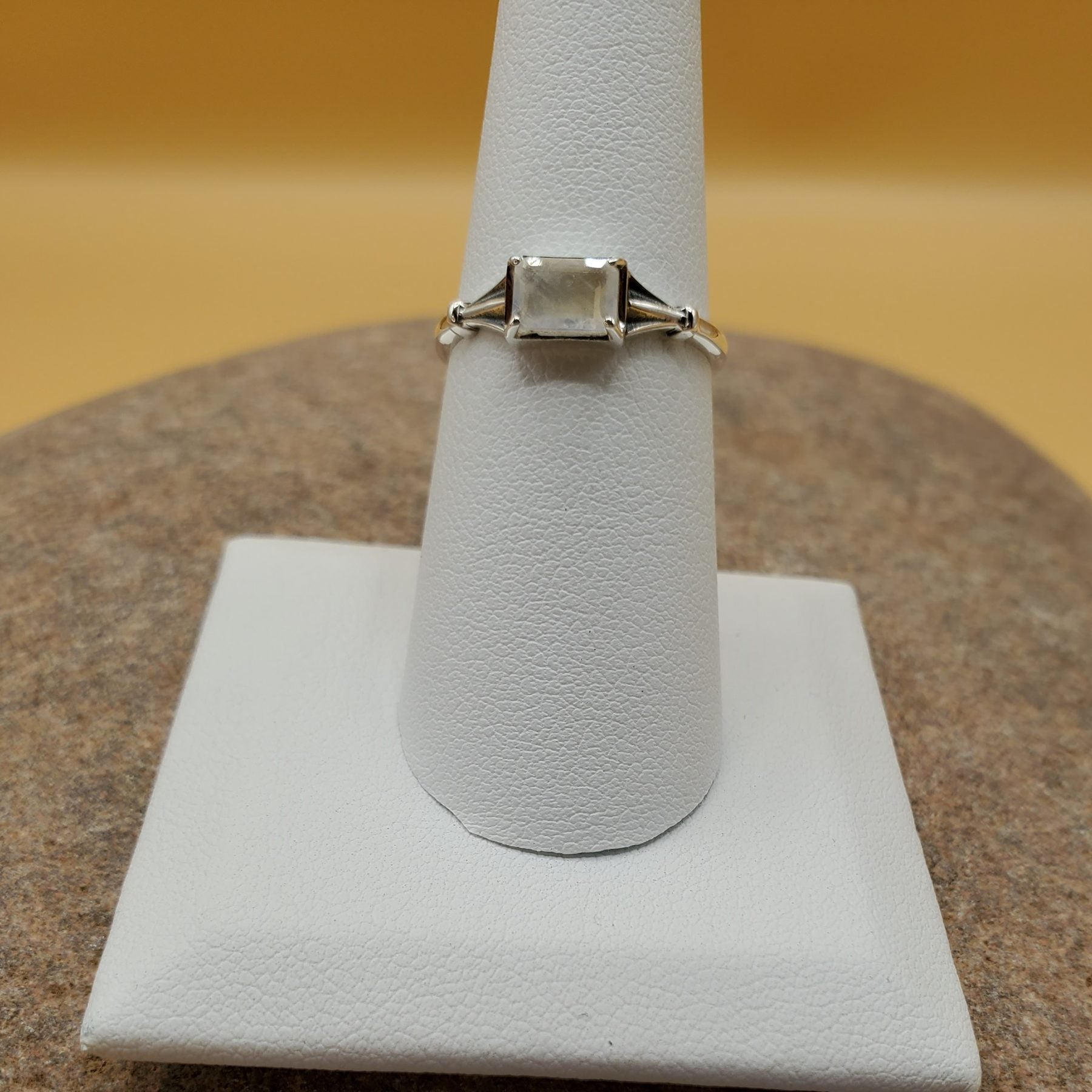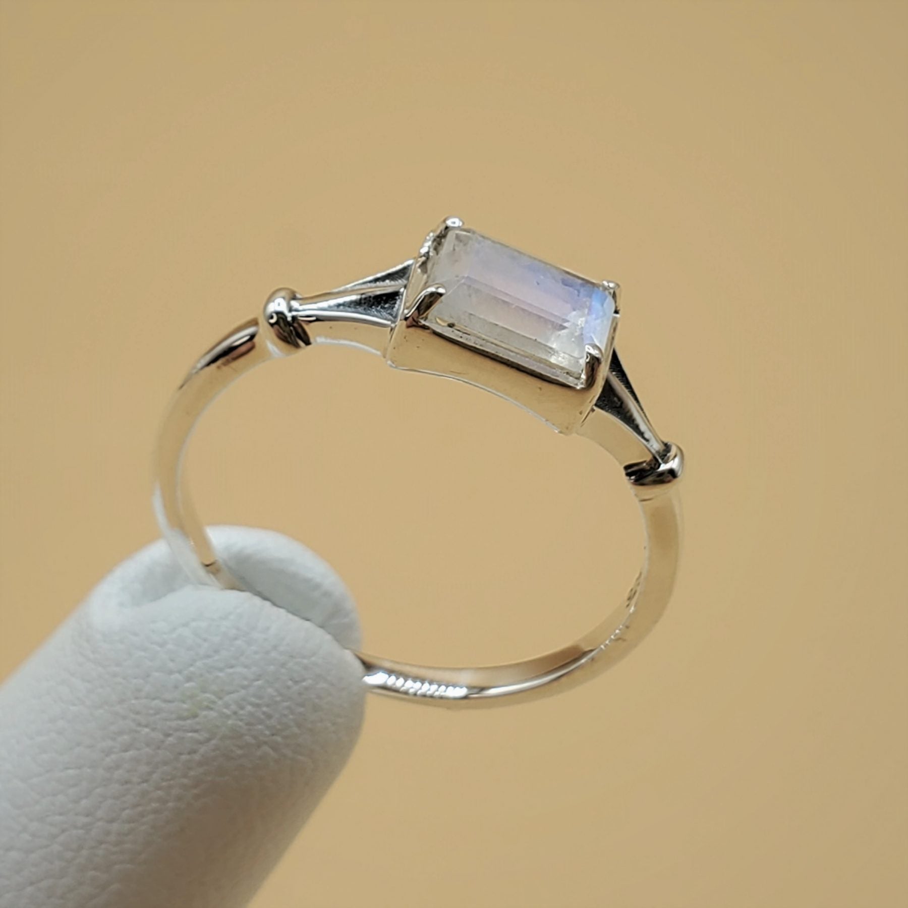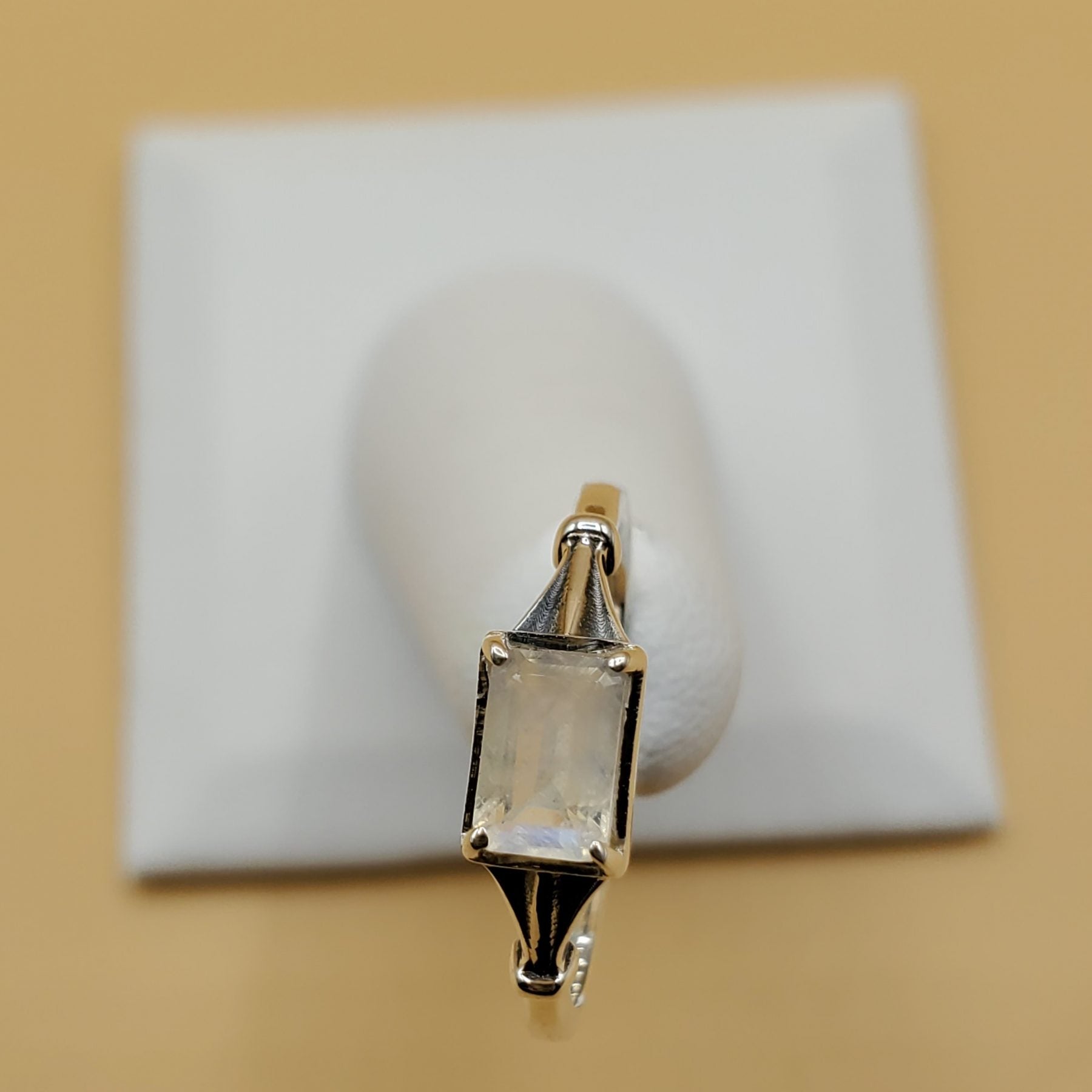 Delicate Baguette Cut Moonstone Ring 14mm x 16mm center stone